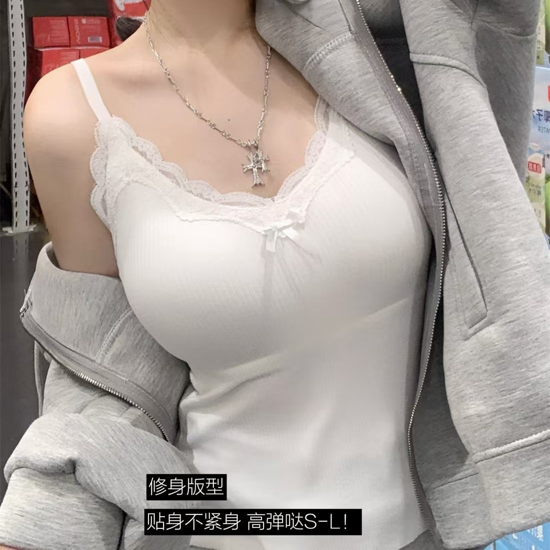 セクシーな女性用キャミソール、純綿、胸パッド付き、一体型、胸を包み込む、スリムフィット、外でも着られる、インナー、綿素材、通気性