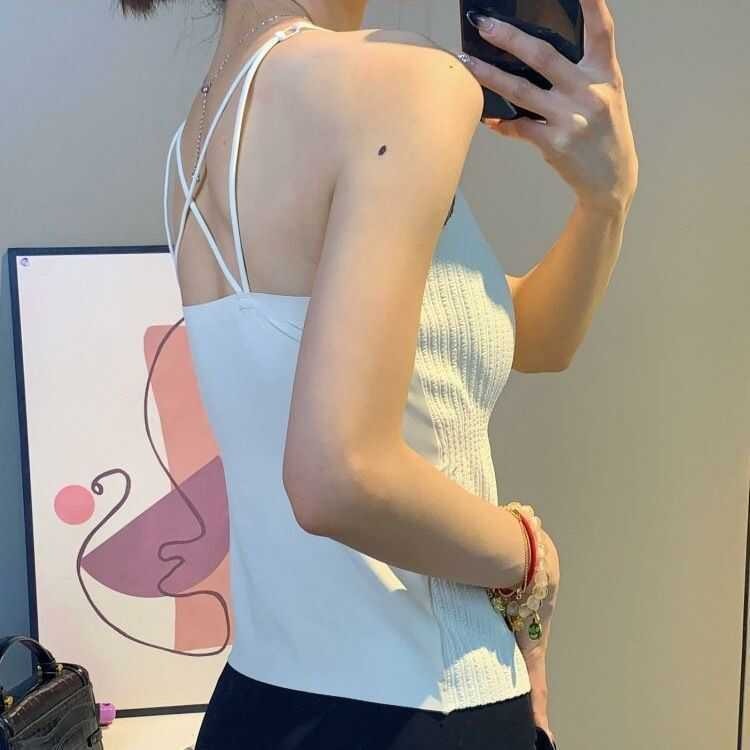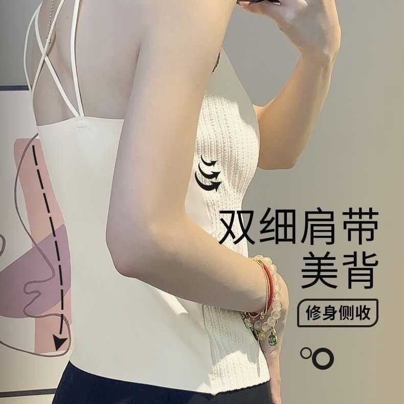 小さめのキャミソール、リブ編みコットン、U字型美背、万能、スリムフィット、胸パッド付き、固定カップ、胸を包み込む、女性用、露出防止、ベストタイプ