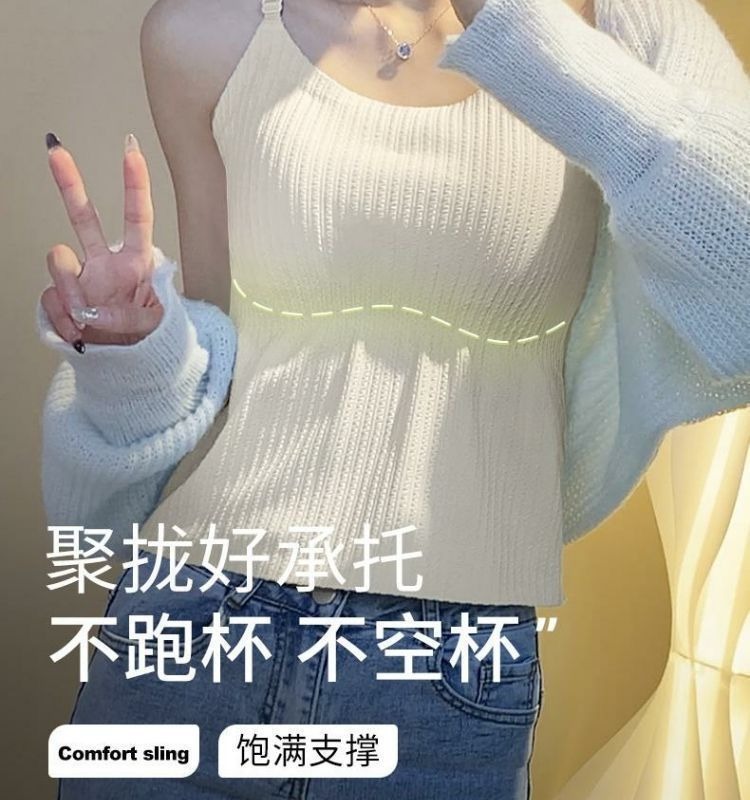 ディザトーンと同じストラップのベスト女性ラテックスカップパッド一体式胸パッド付き垂れ下がり防止氷糸無痕美背