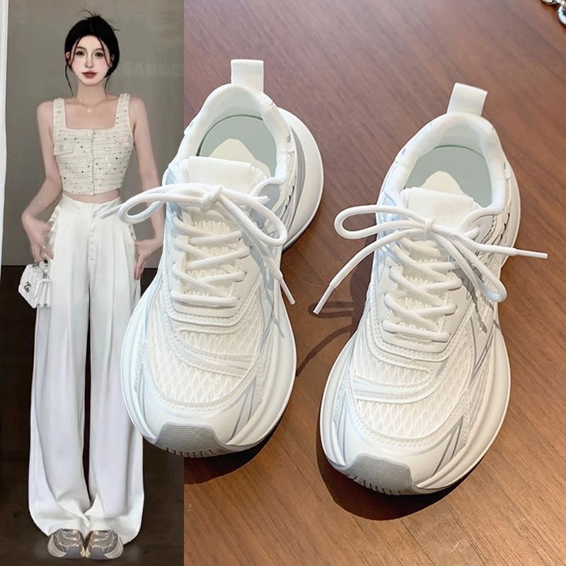厚底お父さん靴女性のための 2025 春と秋の新作メッシュ通気性多用途白靴イントレンディなカジュアルスポーツシューズ