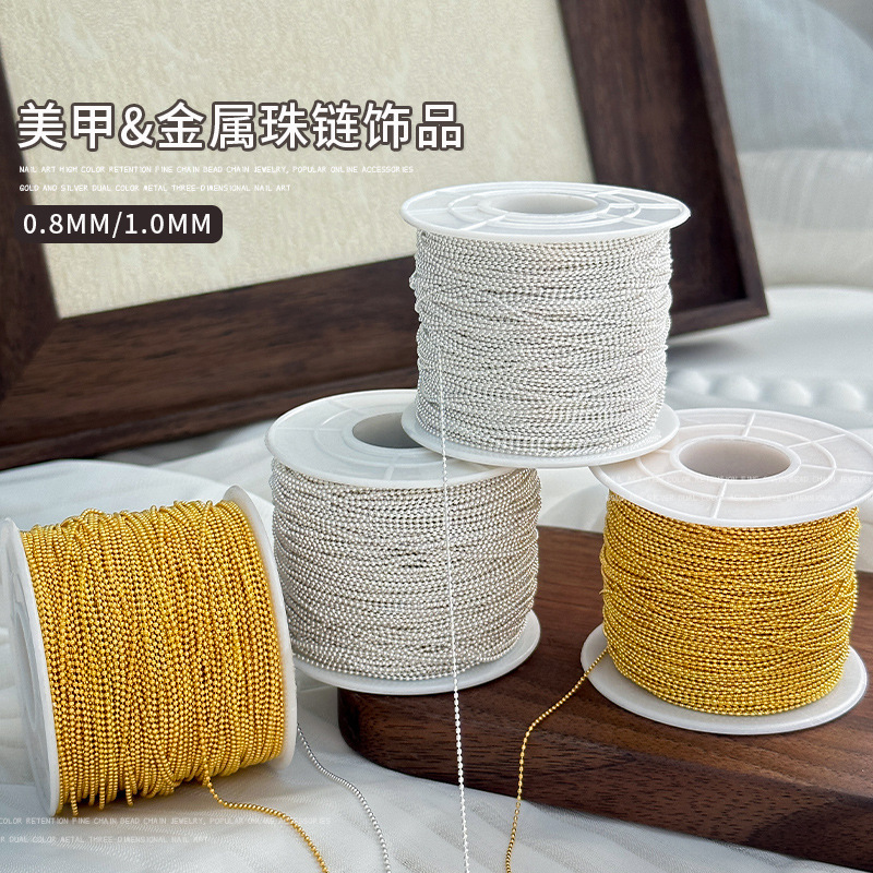 日系ネイルアートメタルチェーン特细ビーズチェーンアクセサリー0.8mmスチールビーズ爪チェーン饰り金と銀は裁断可能