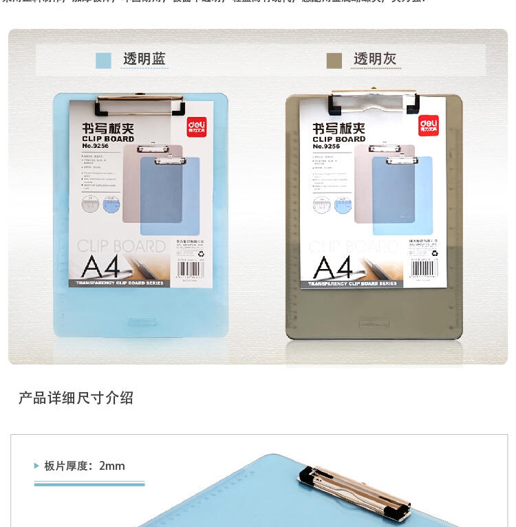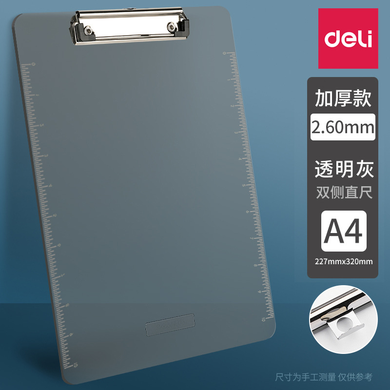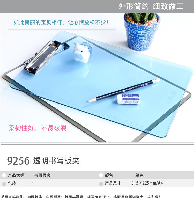 得力9256透明筆記板クリップa 4ファイル学生書字パッド試巻クリップ事務用ファイルクリップ