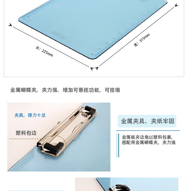 9256a4ボードクリップパッド書きパッドファイルボードクリップファイルプラスチック透明タブレットクリップ