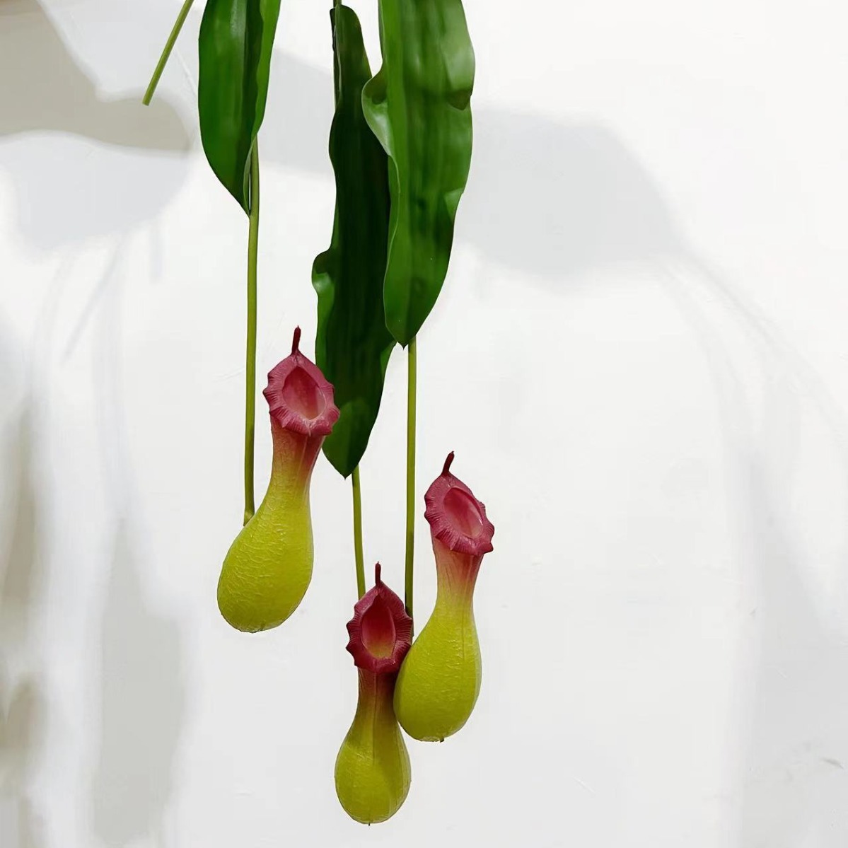 籐の壁掛け豚籠草のハエ取りプラスチックの柔らかいゴムの装飾品をシミュレーションします。
