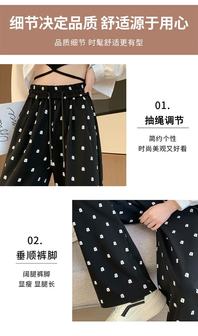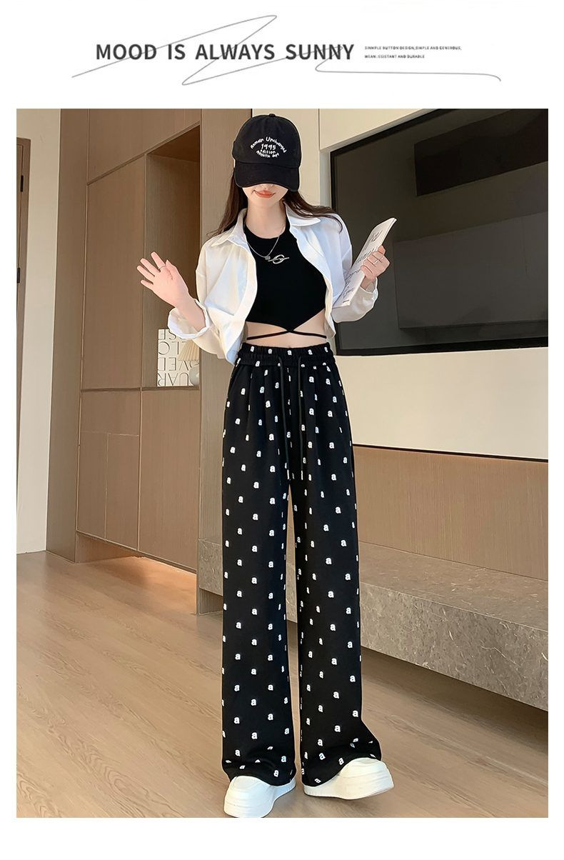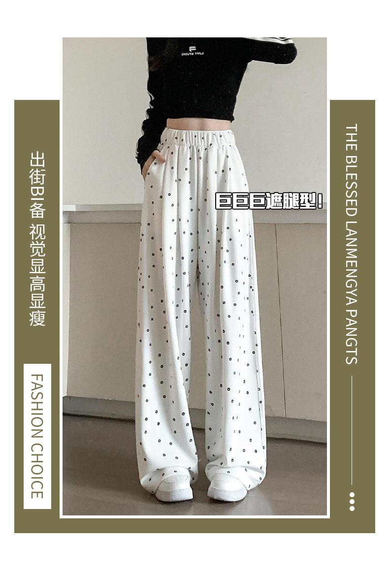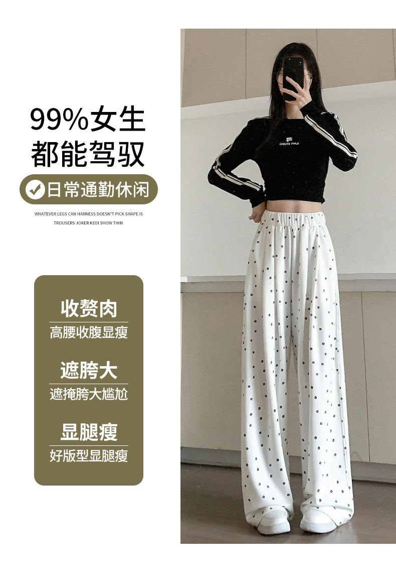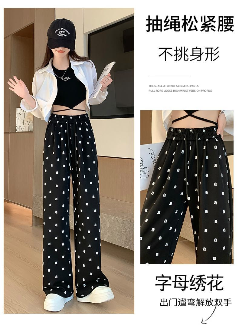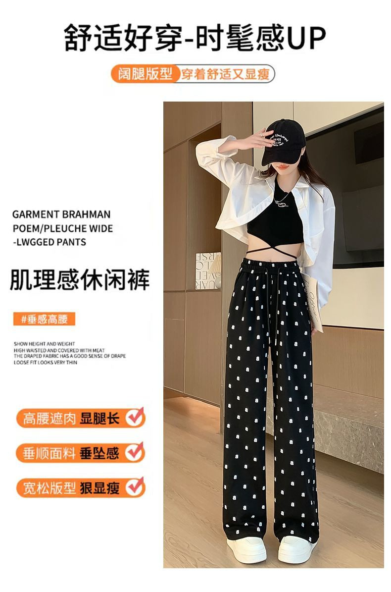 文芸レトロなプリントのワイドパンツの女性2024夏の薄いタイプのゆったりしたカジュアルパンツのファッション的なウエストパンツ