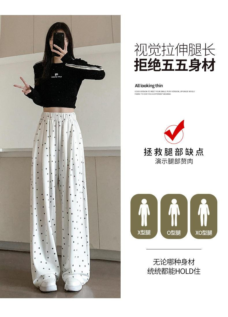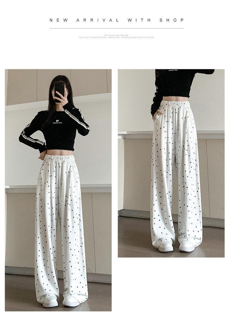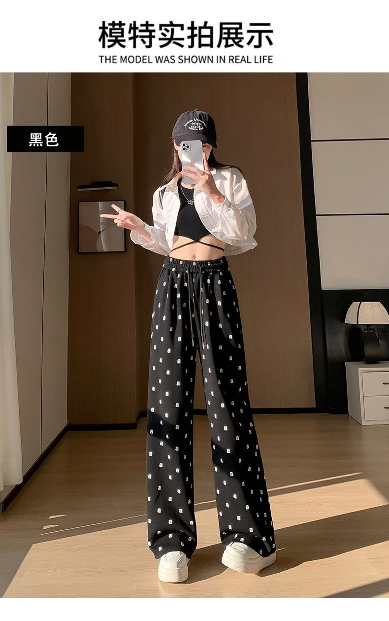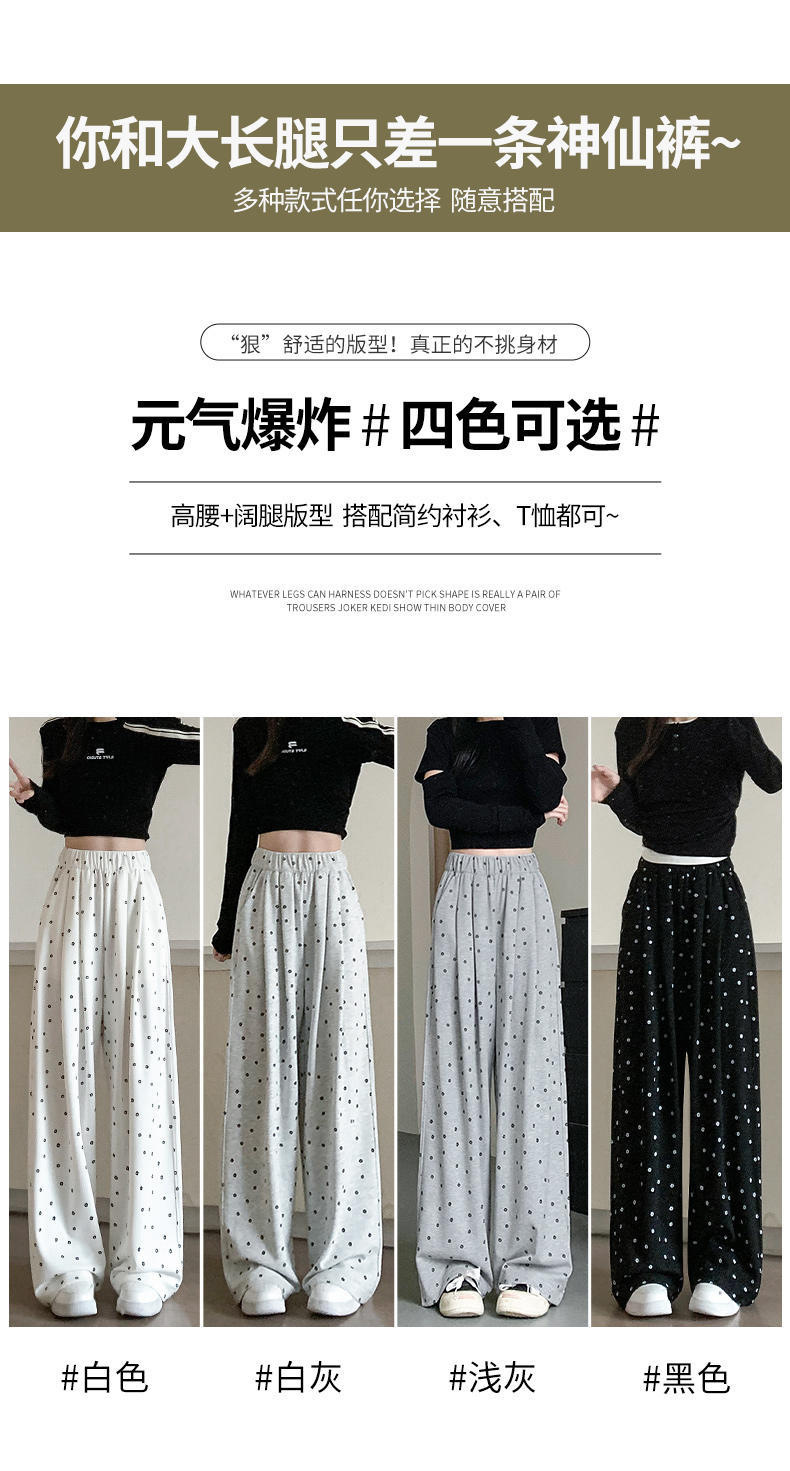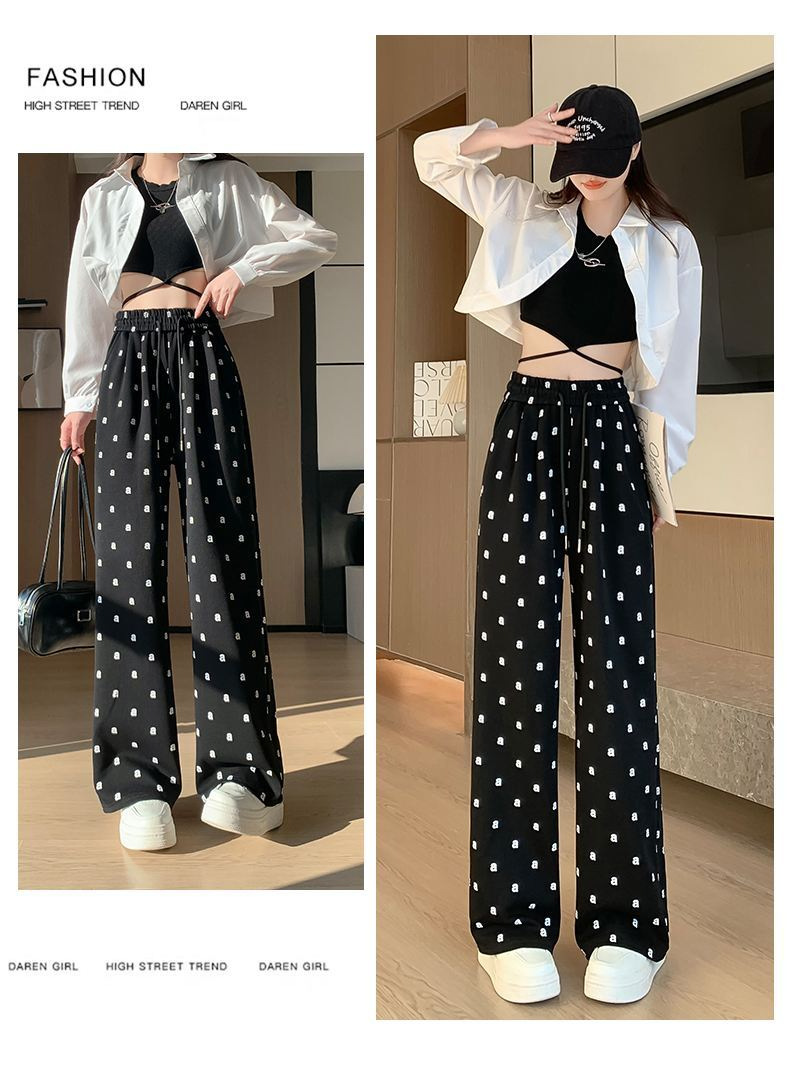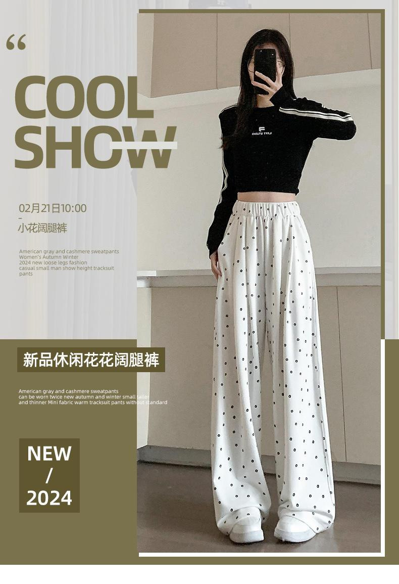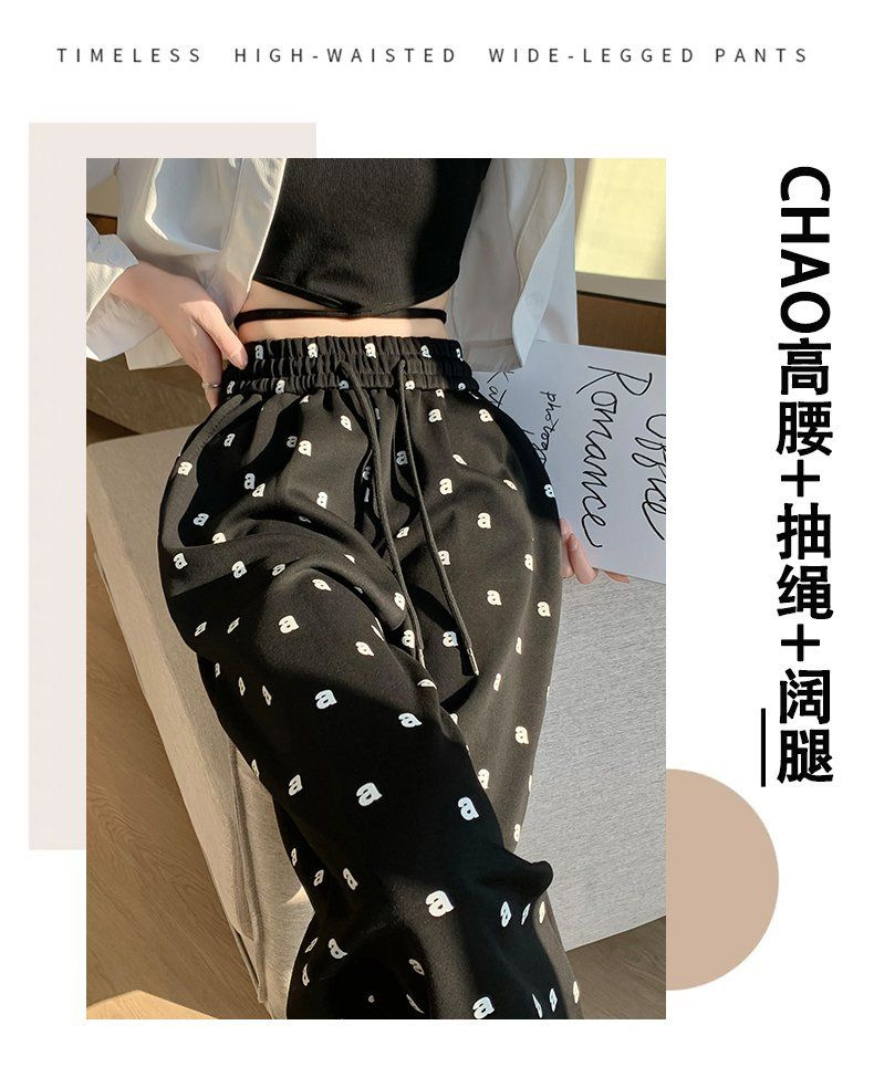 文芸レトロなプリントのワイドパンツの女性2024夏の薄いタイプのゆったりしたカジュアルパンツのファッション的なウエストパンツ