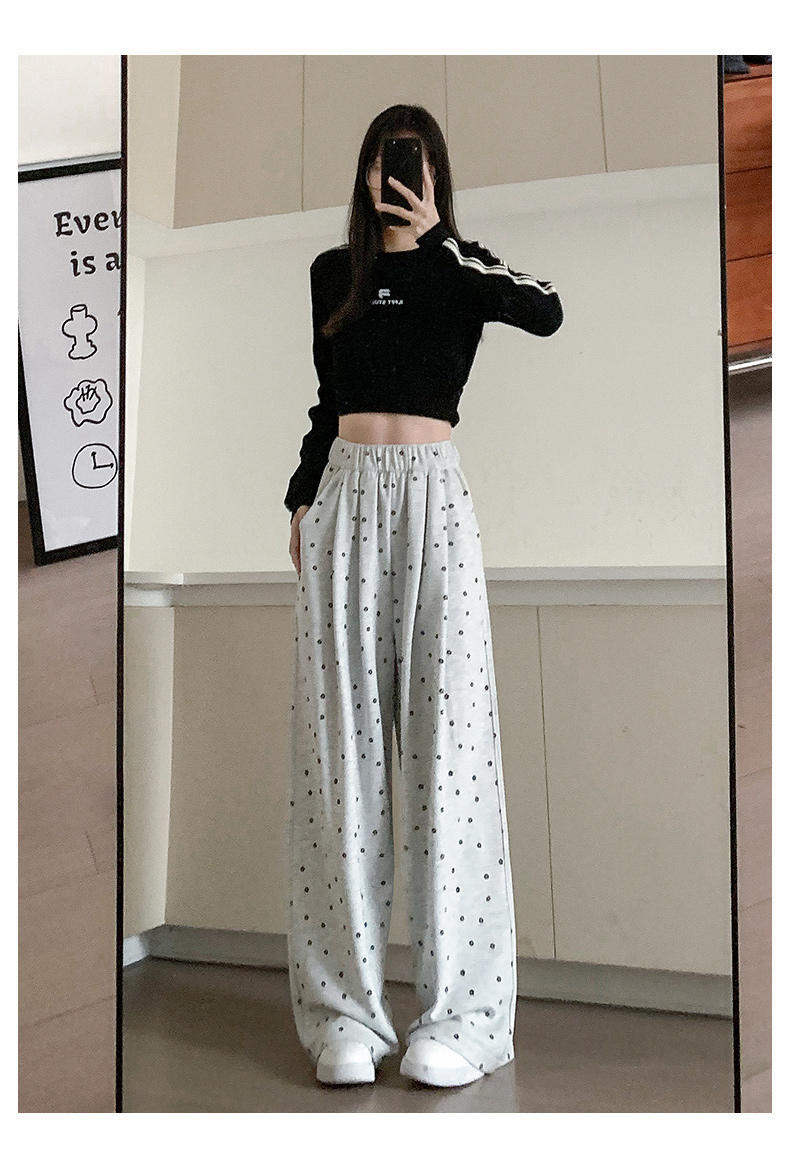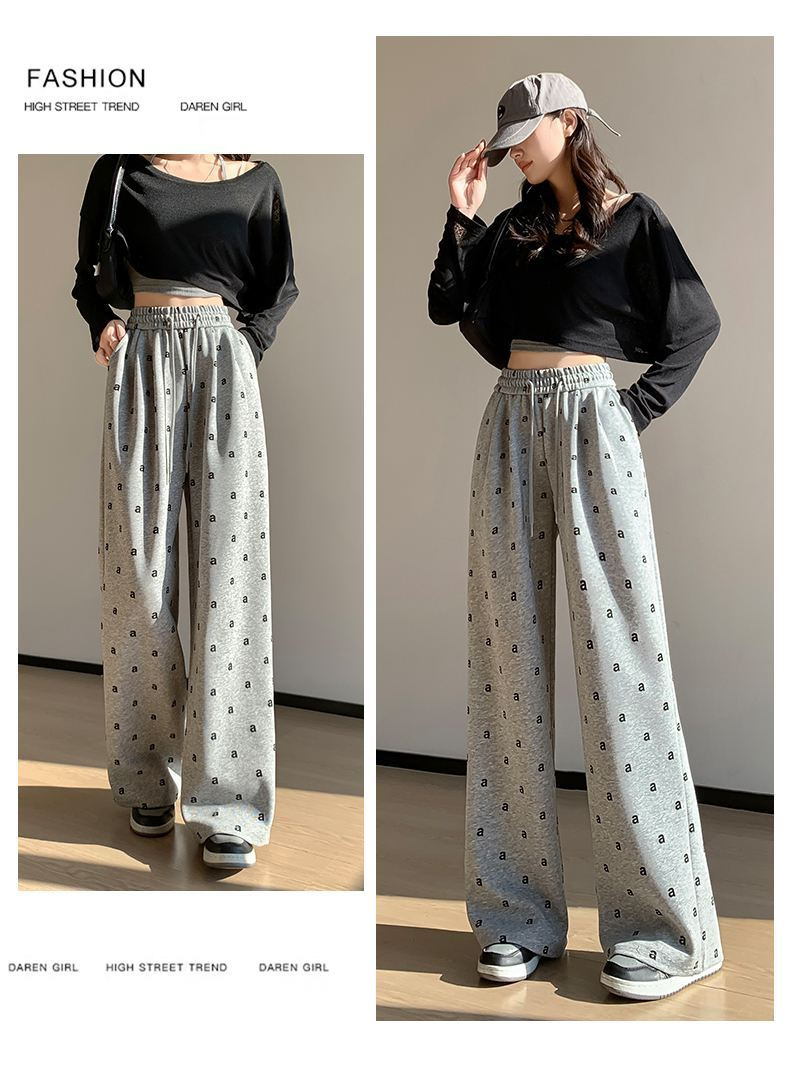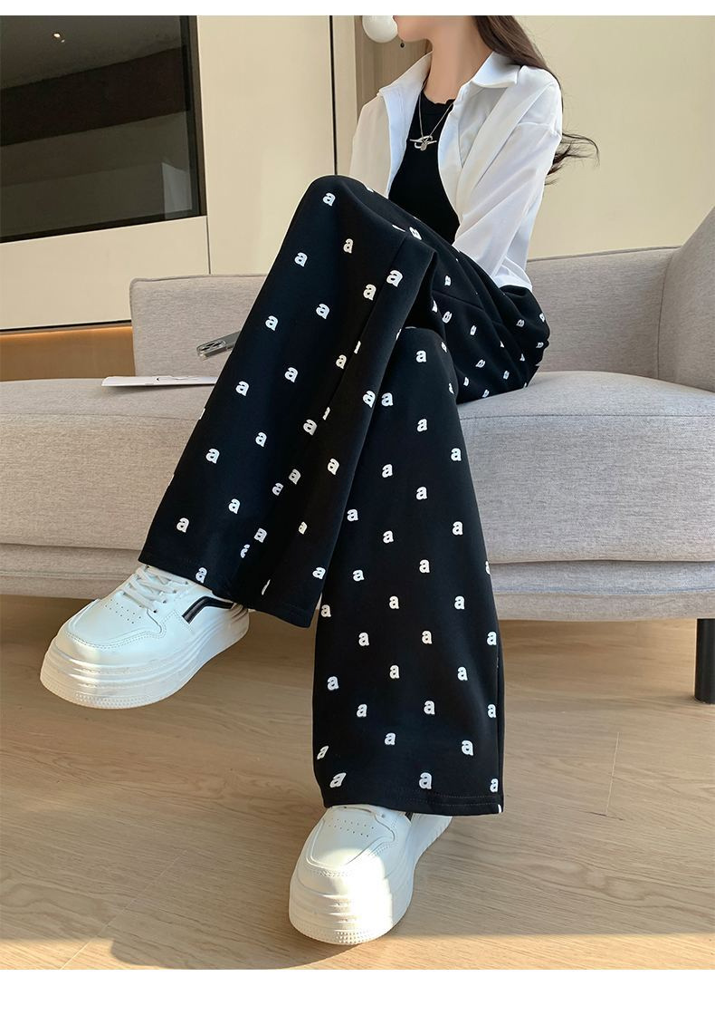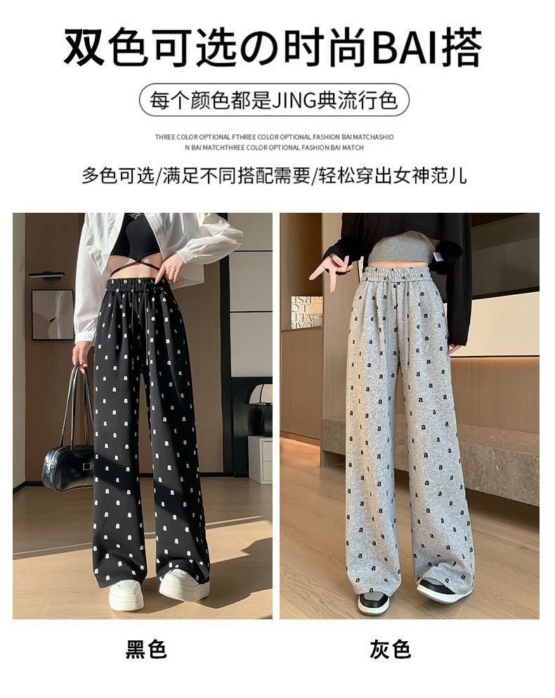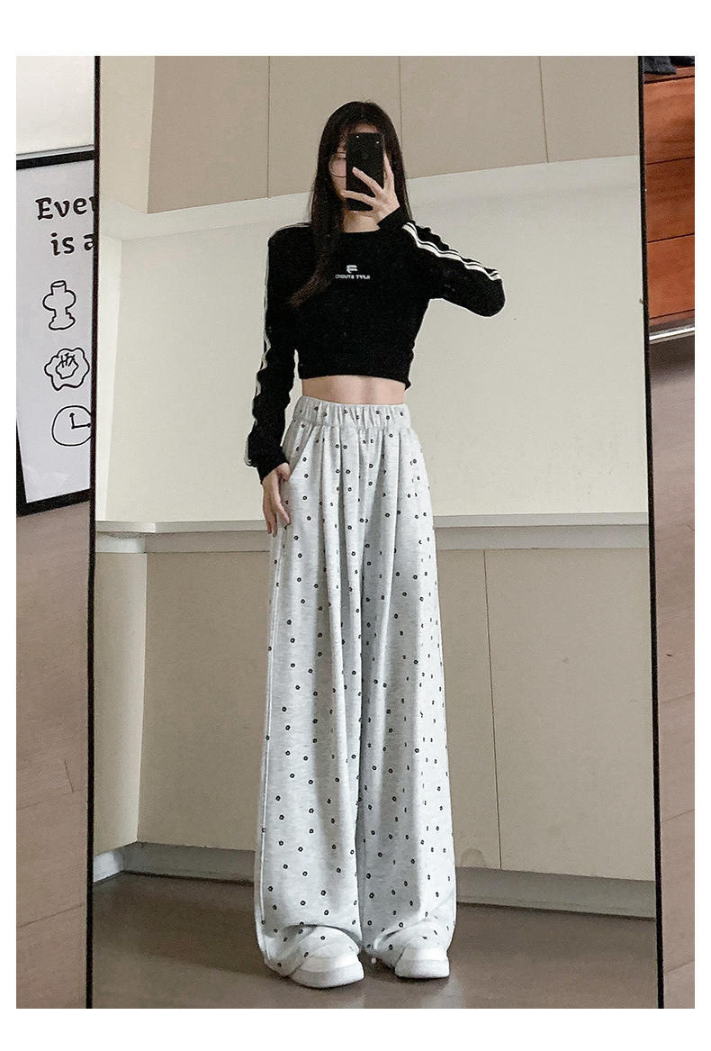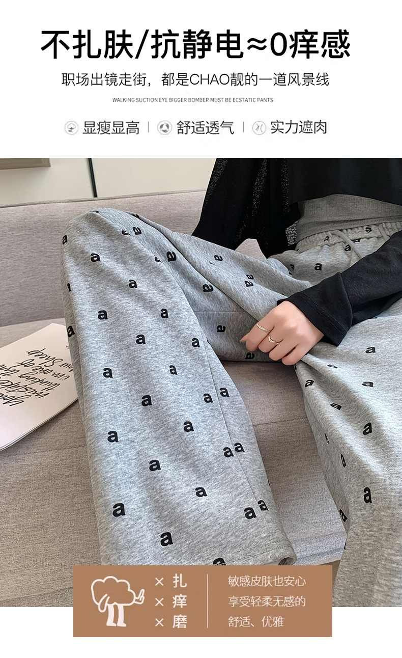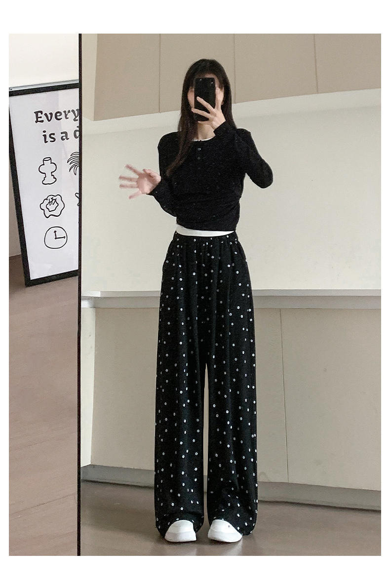 文芸レトロなプリントのワイドパンツの女性2024夏の薄いタイプのゆったりしたカジュアルパンツのファッション的なウエストパンツ