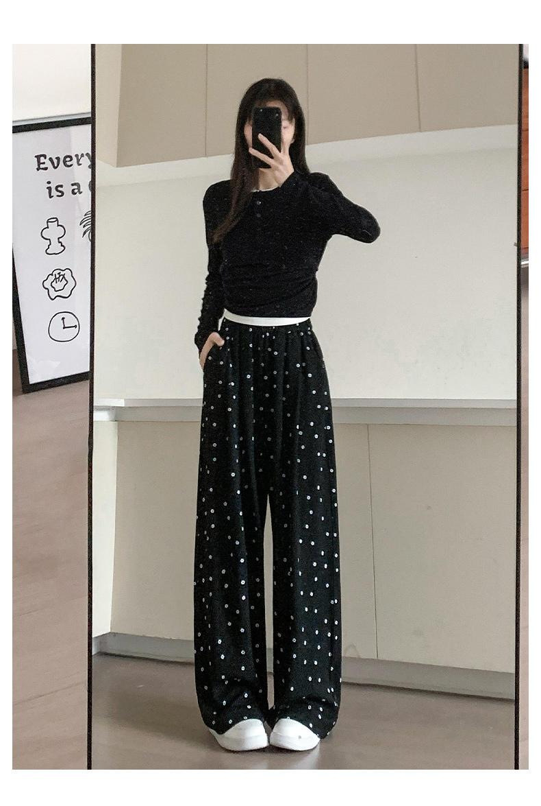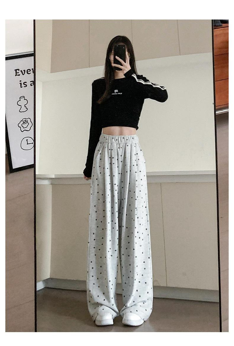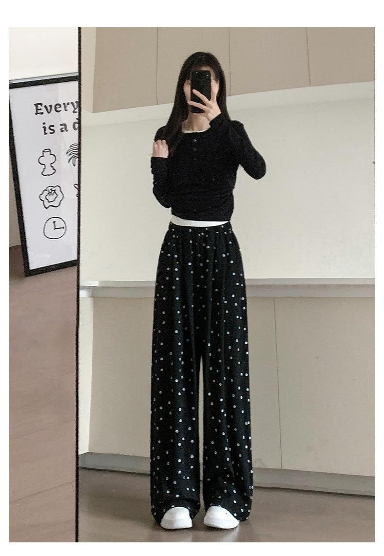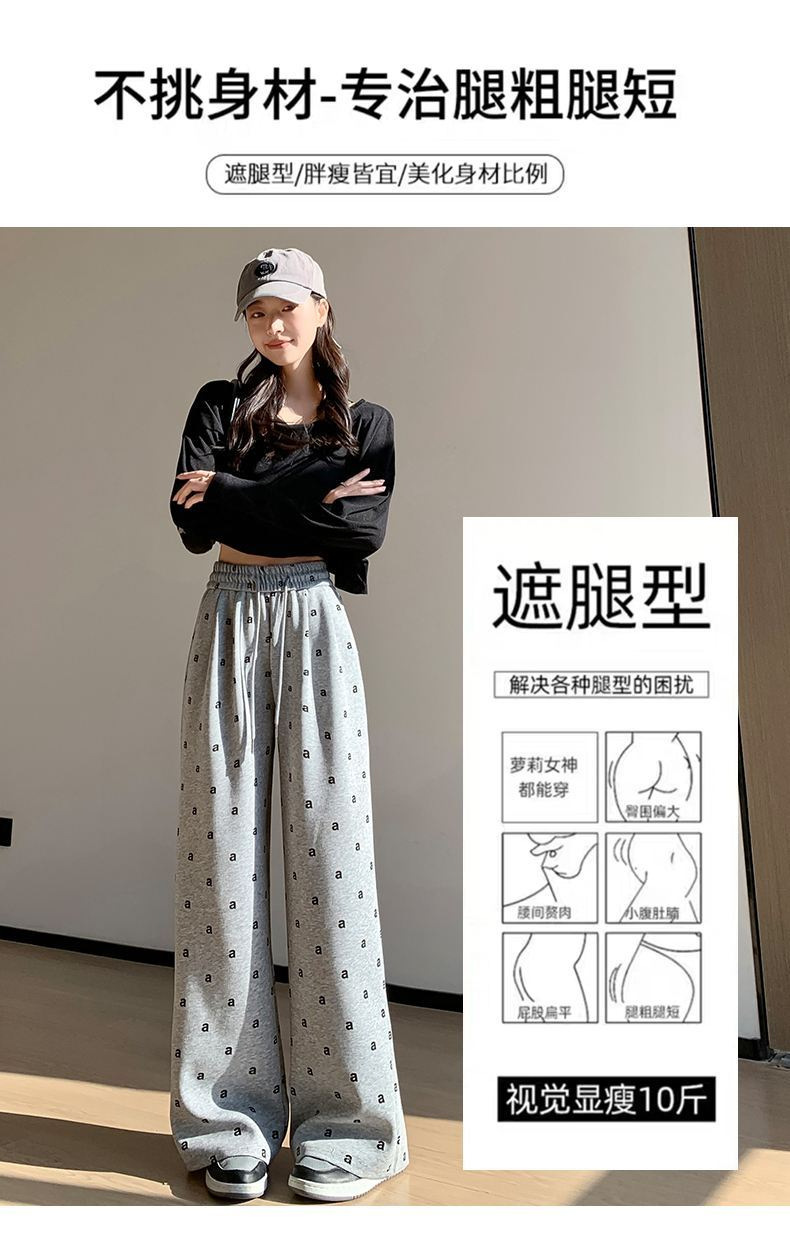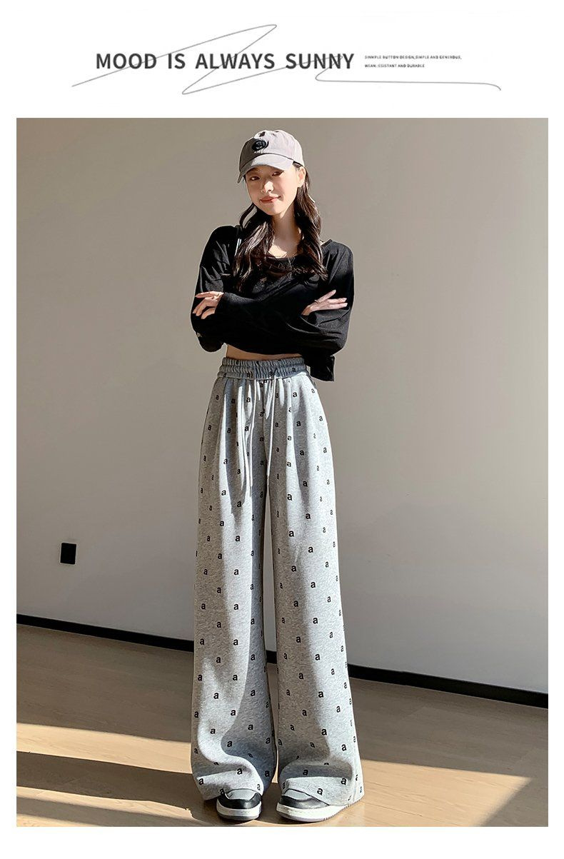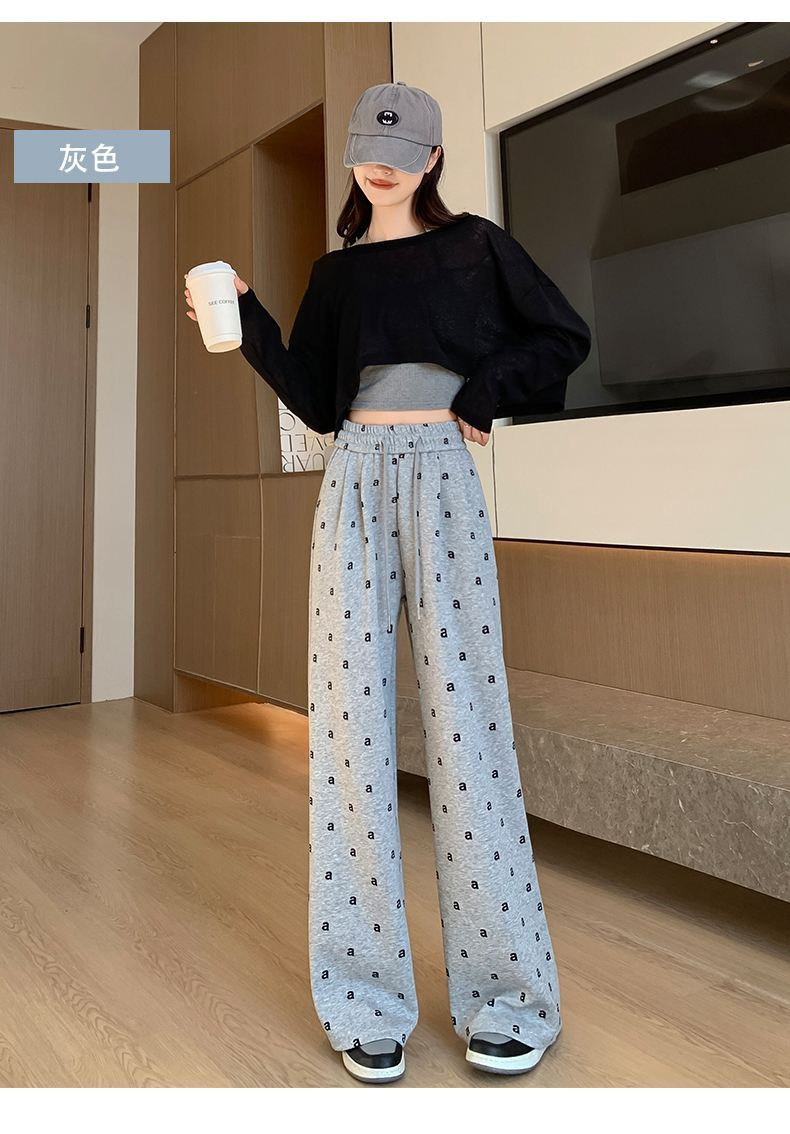 文芸レトロなプリントのワイドパンツの女性2024夏の薄いタイプのゆったりしたカジュアルパンツのファッション的なウエストパンツ