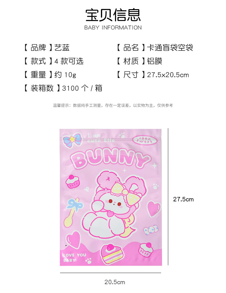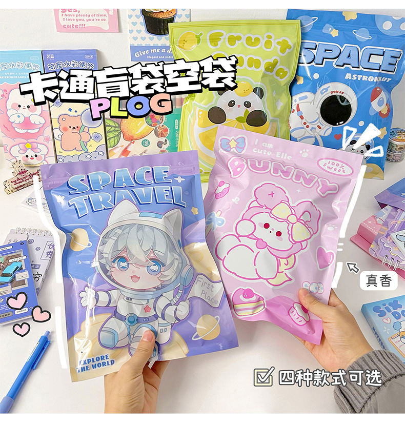 漫画風のかわいいブラインドバッグ、空袋、セルフシール、個性的な手作りギフトバッグ、学生の入学祝い、新年のギフトバッグ