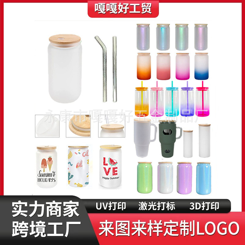 クロスボーダー新型透明つや消しグラデーション色16オンス熱昇華高ホウ素シリコン虹漆蛍光グラス