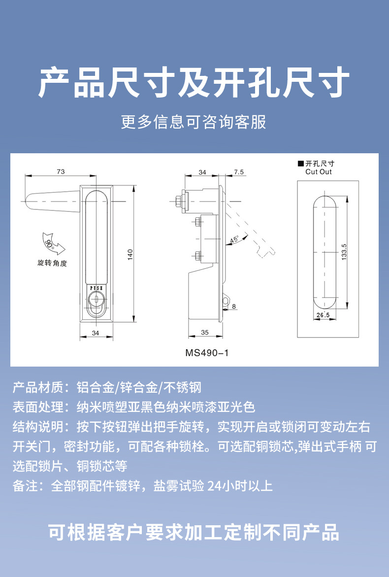 宏貴ms490平面ロック配電箱ドアロック動力箱ドアロックms490スイッチ制御盤ロックms818