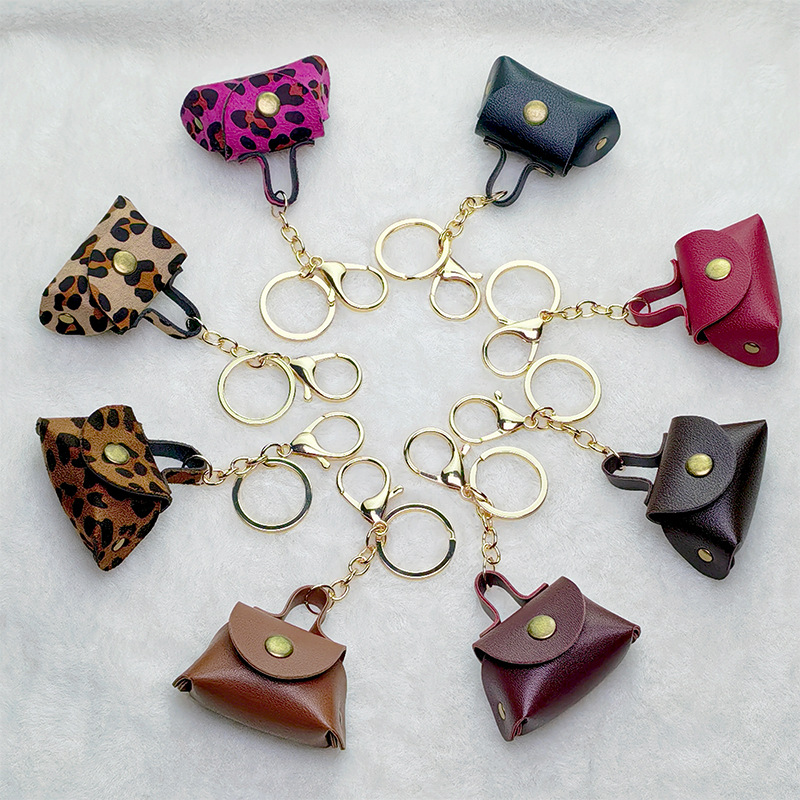 ミニバッグキーホルダーアクセサリー、車、バッグ、鍵、ジュエリー、ペンダント、かわいいレザー収納バッグ、飾り、越境