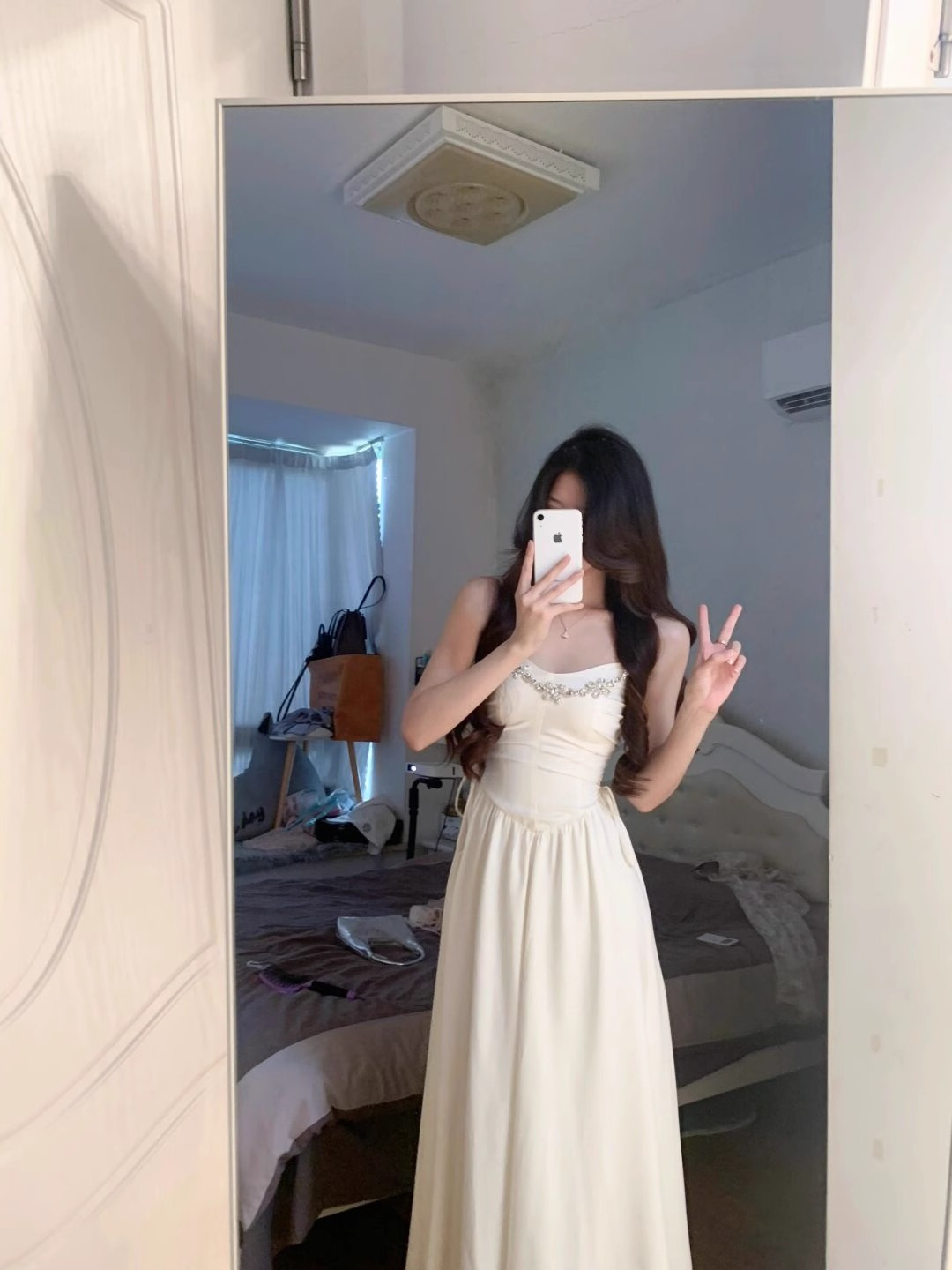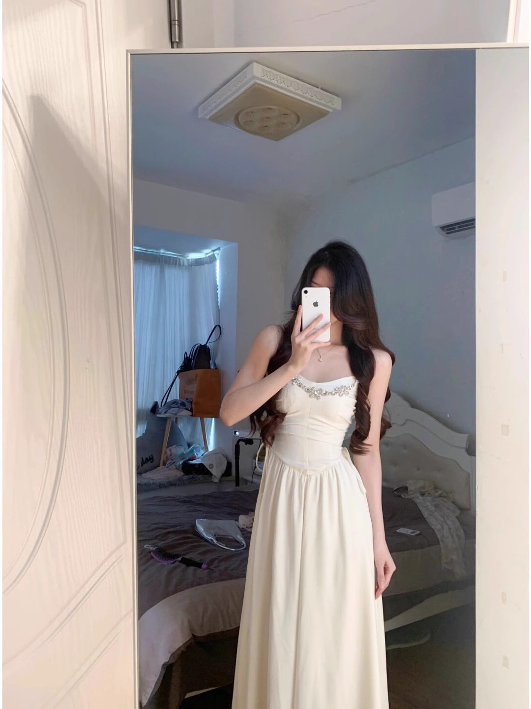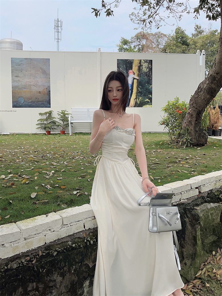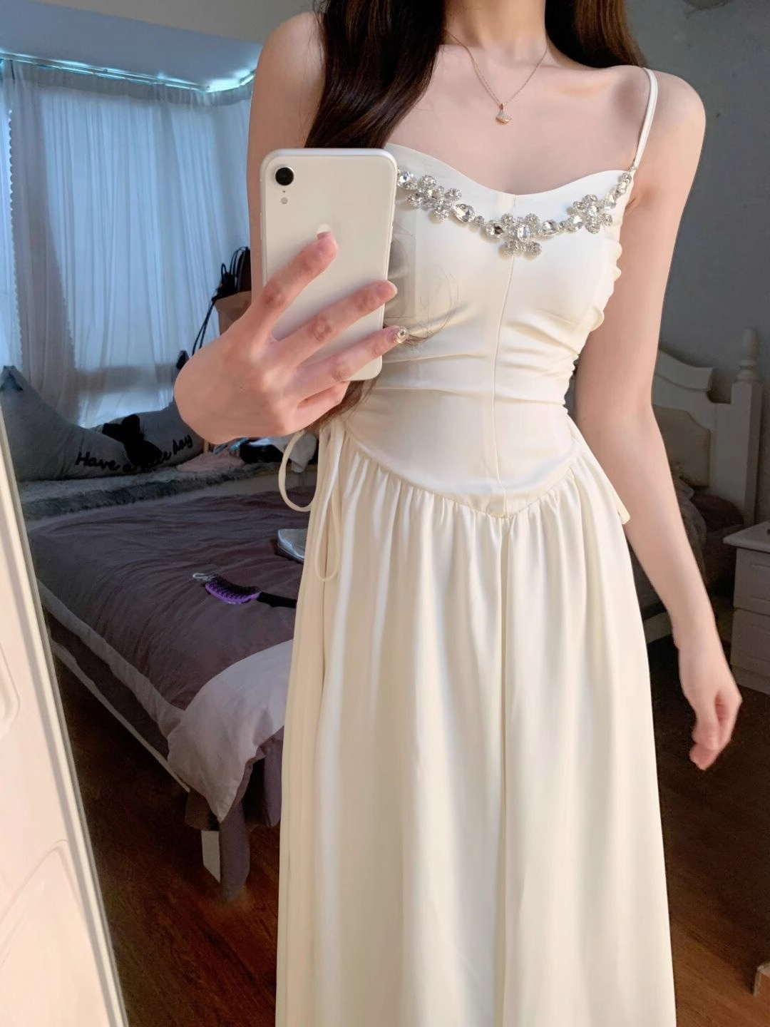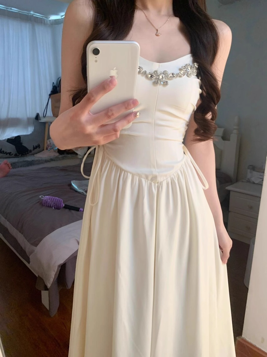気質の水ドリルの新型のデザイン感は腰のしわのワンピースを収めます。