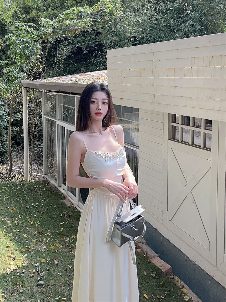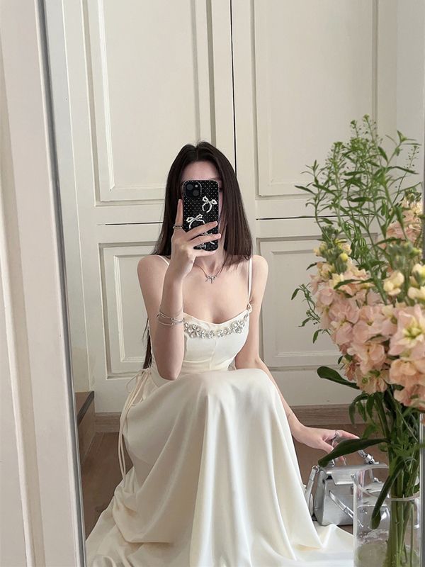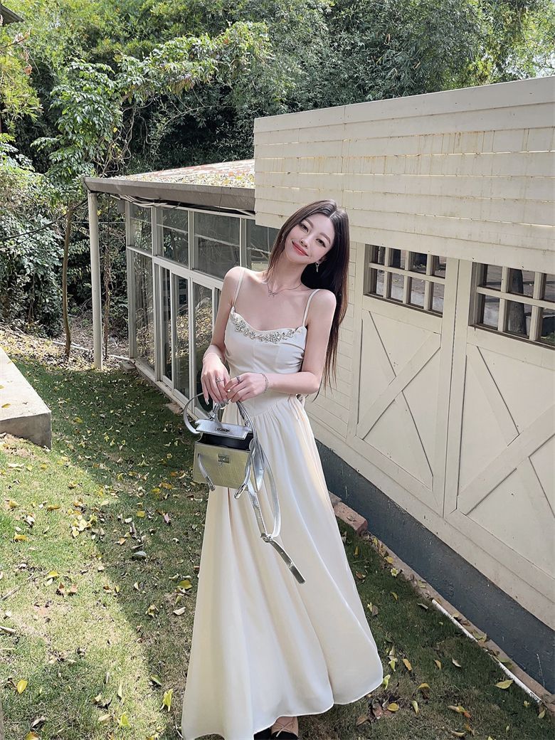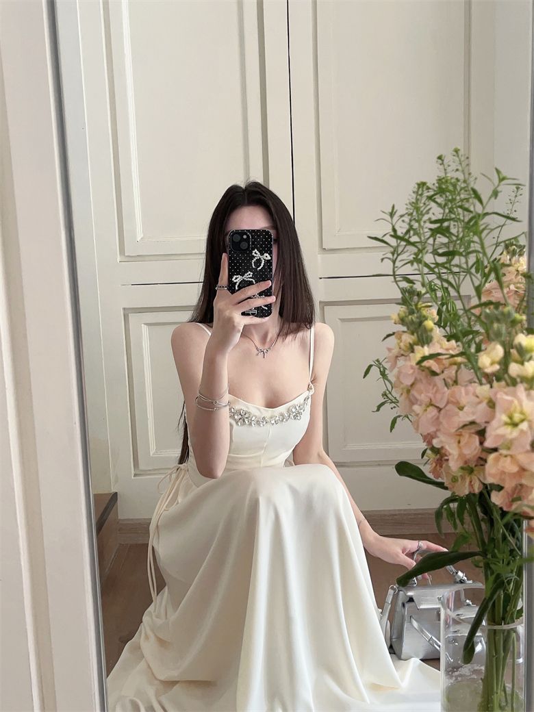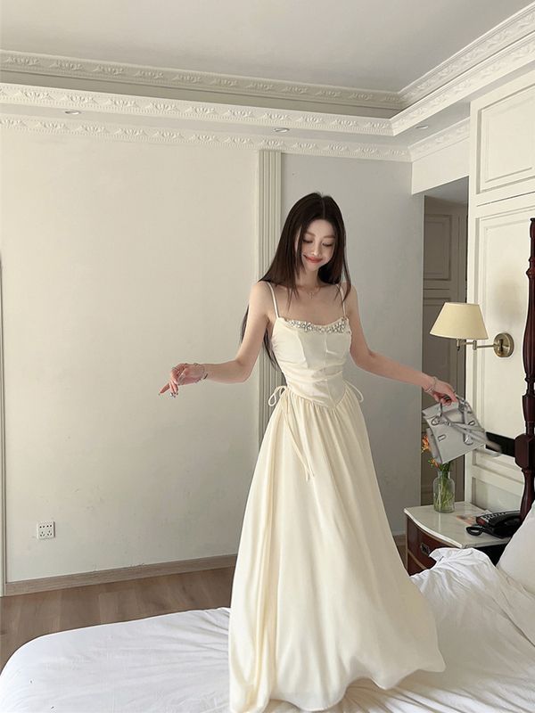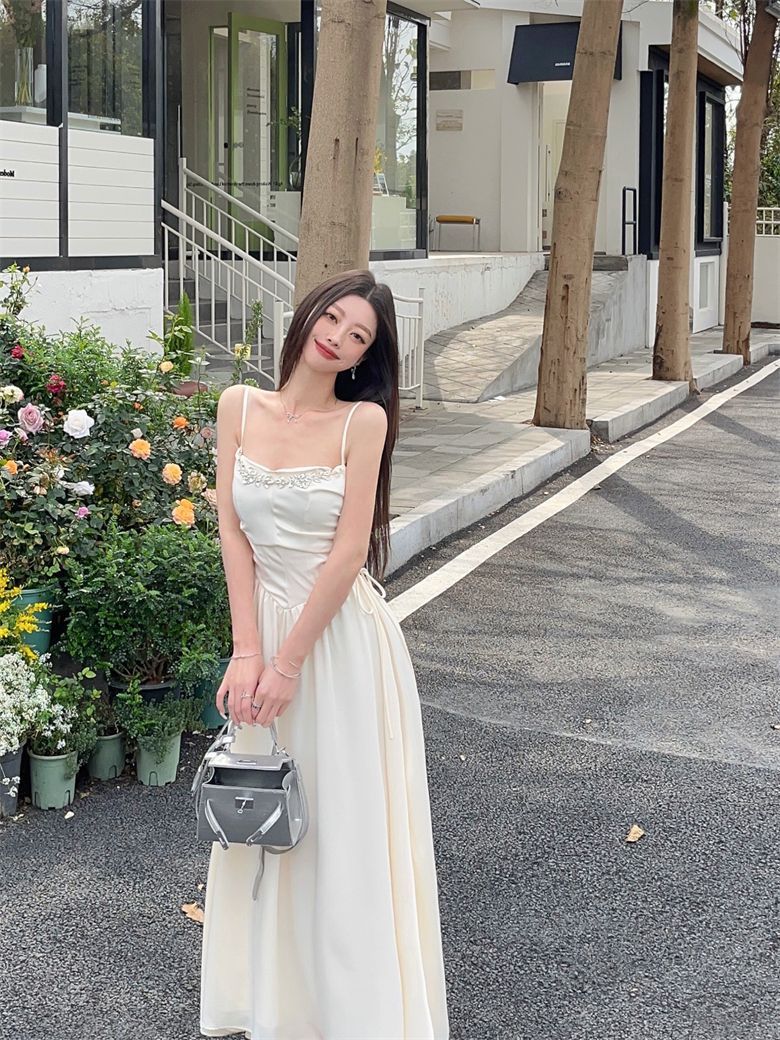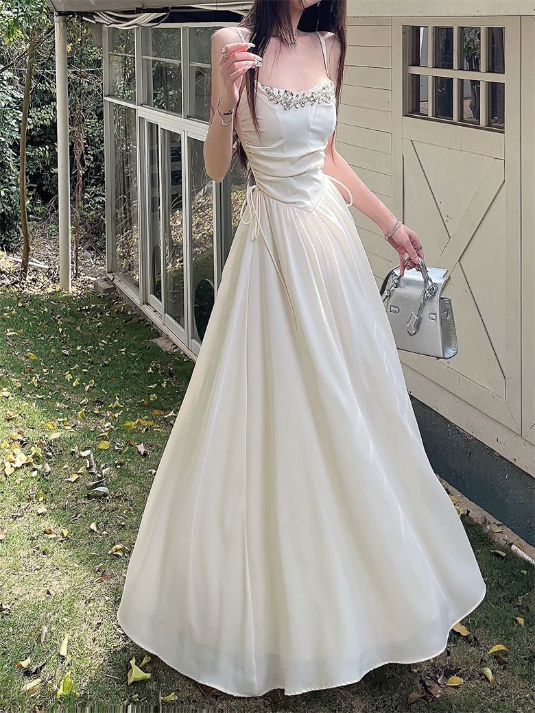 気質の水ドリルの新型のデザイン感は腰のしわのワンピースを収めます。