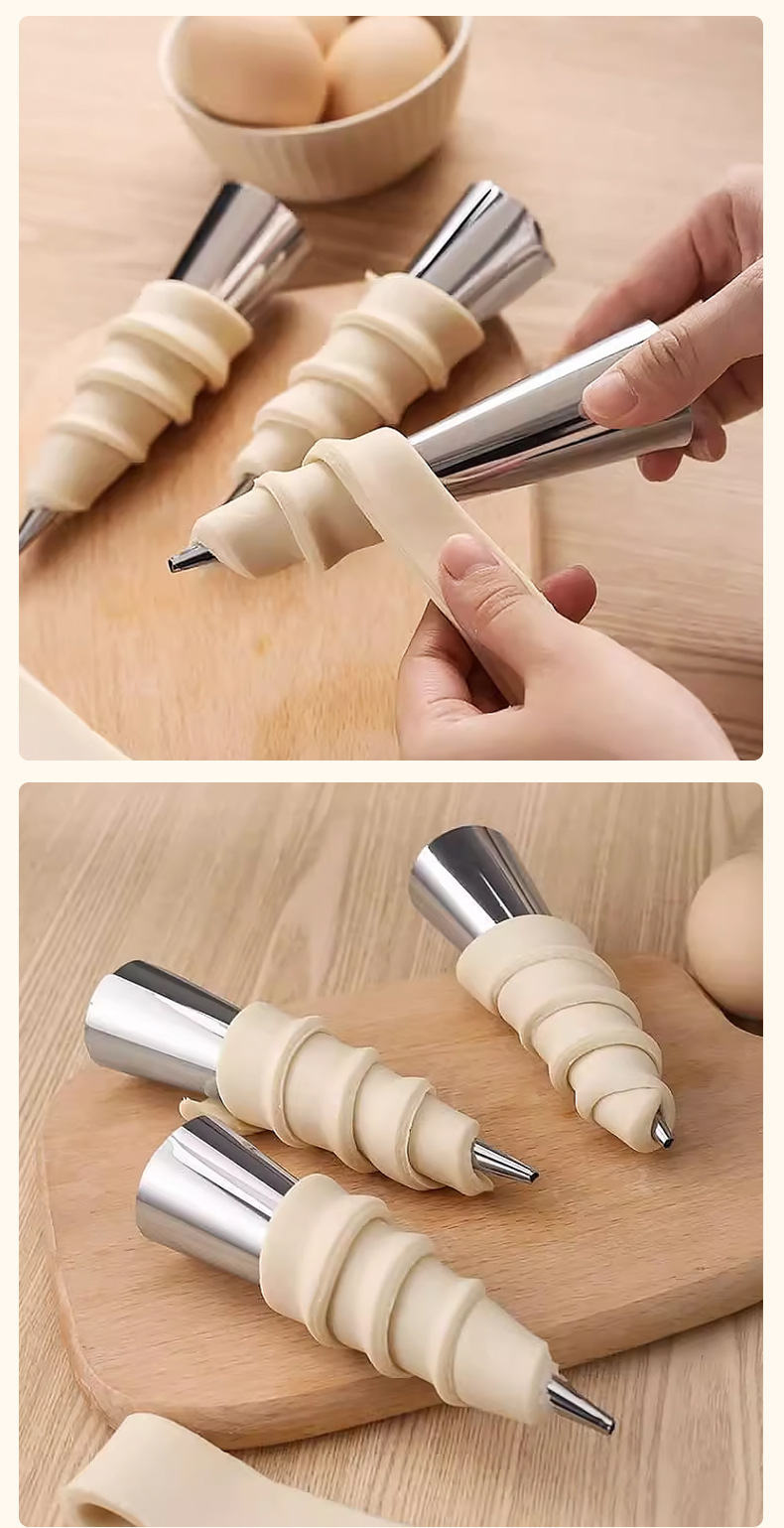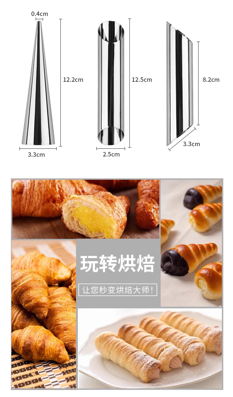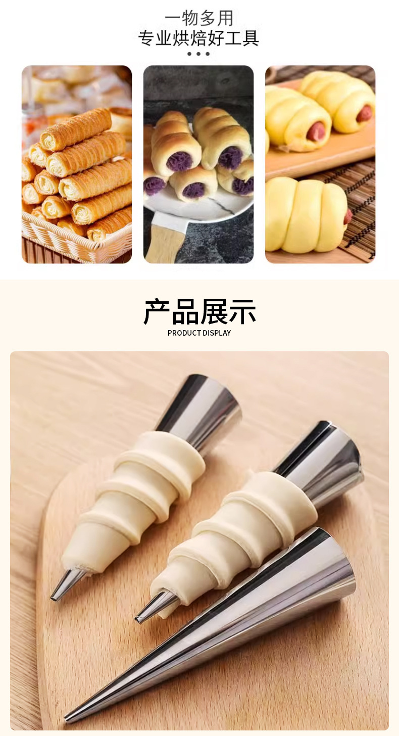 国境を越えたスポットステンレス鋼ベーキングデンマーク大型スパイラルチューブクロワッサンクロワッサンスパイラル円錐管ベーキングツール
