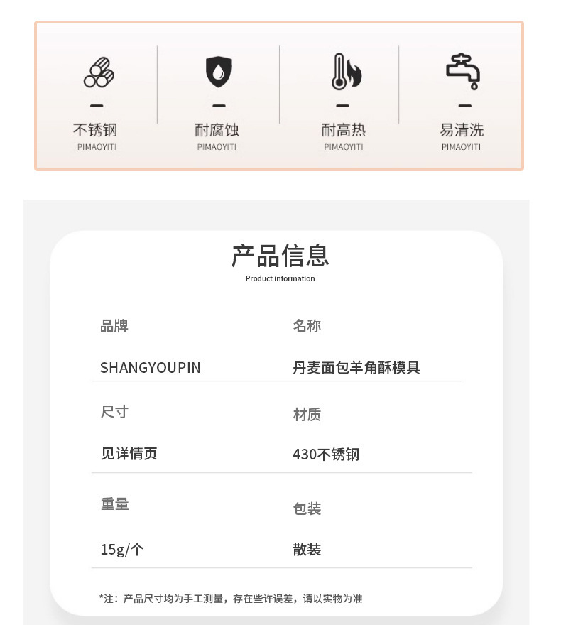 国境を越えた現物ステンレス焙煎金型デンマーク大ナット管羊角ショートニング牛角包スパイラル錐形管