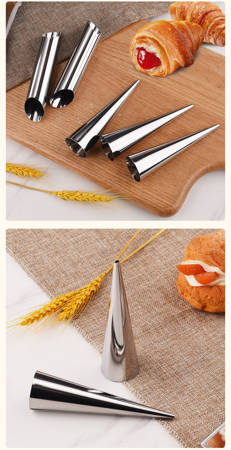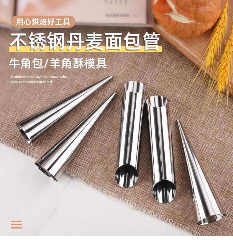 スポットステンレス鋼ベーキングモールドデンマーク大型スパイラルチューブクロワッサン円錐形ラウンドチューブ尖った口キッチンベーキングツール