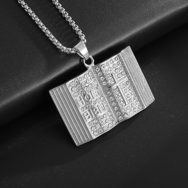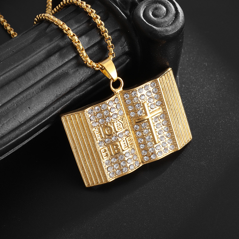 跨境temu速卖通爆款项坠欧美复古圣经书钛钢镀金吊坠项链厂家直发