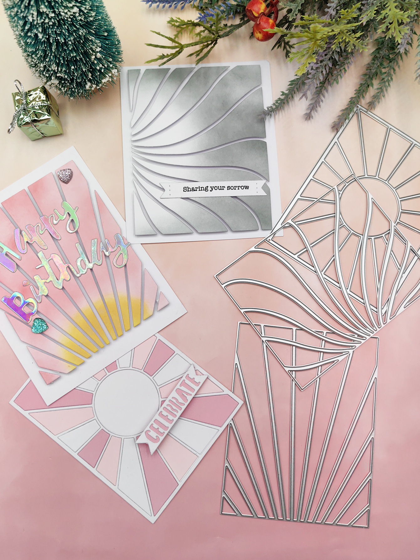3本クリスマスツリーカッティングナイフダイスdiyエンボスナイフダイス炭素鋼金型スクラップブックエンボス金型カッティング