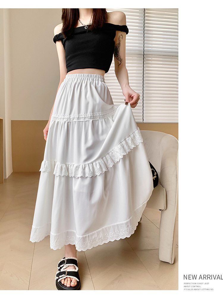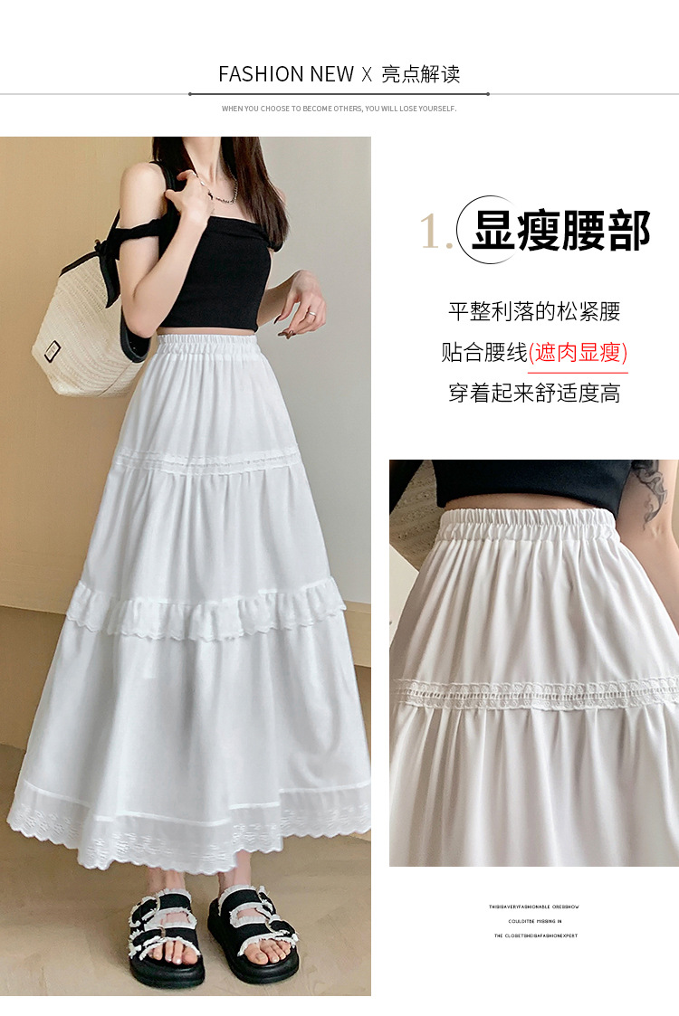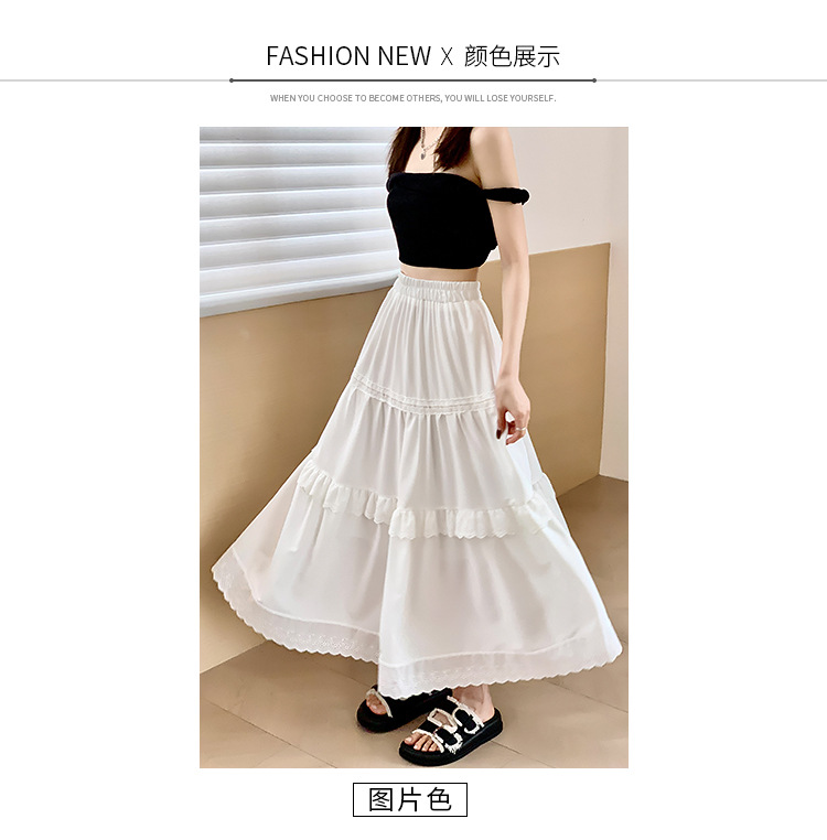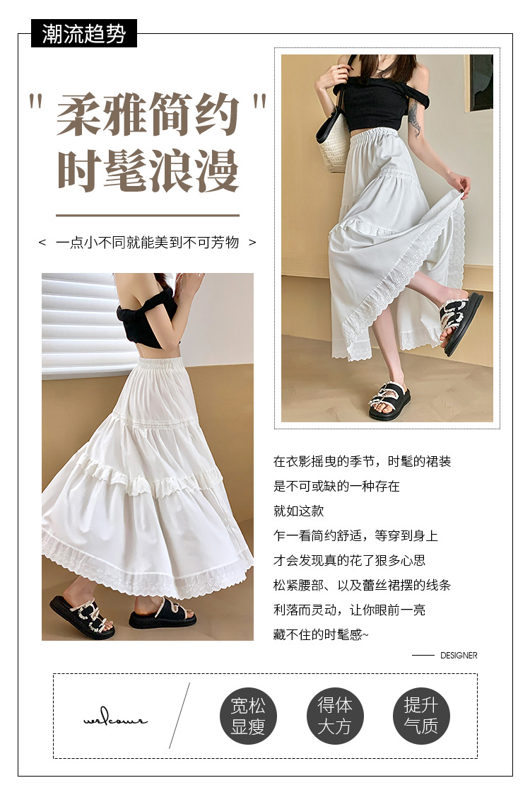 广州十三行高货爆款~法式蕾丝边蛋糕裙子A字裙大摆长裙女春秋百搭