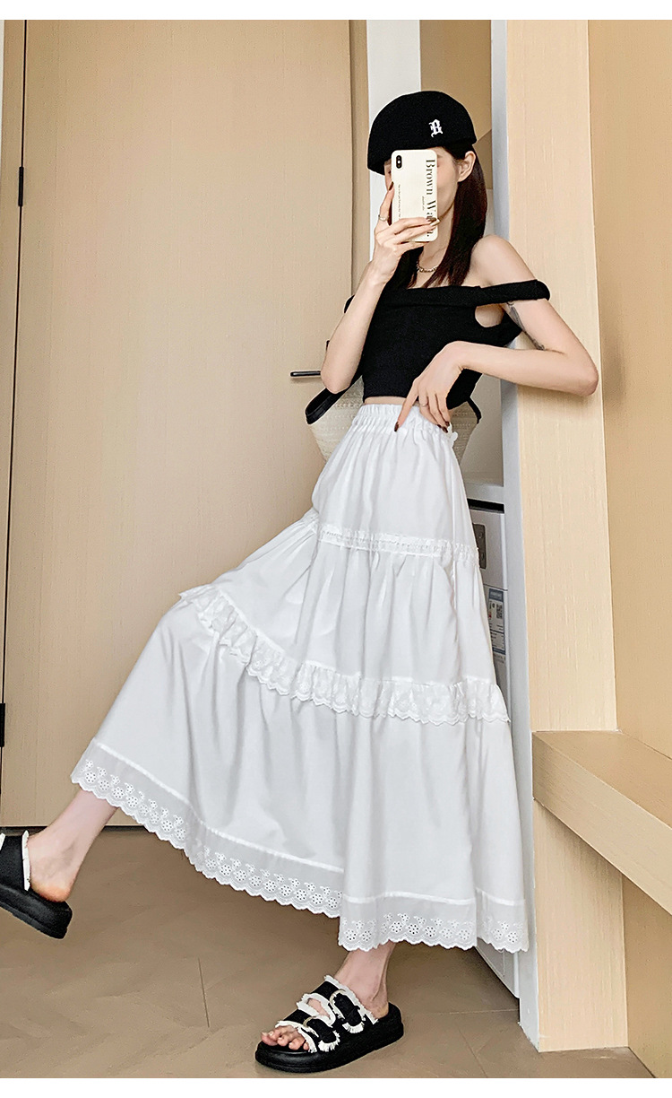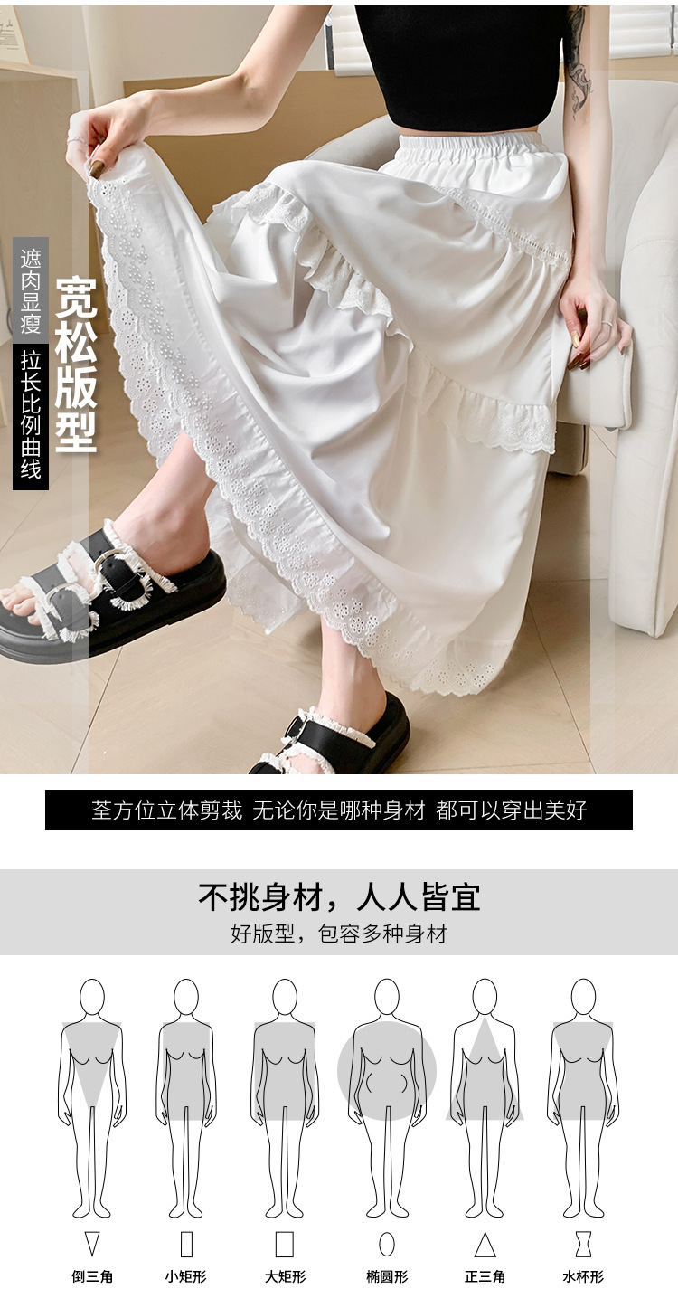 白いスカート、春夏の高級婦人服、2025年新作ハイウエストドレープAラインスカート、小柄な人向けレースケーキスカート