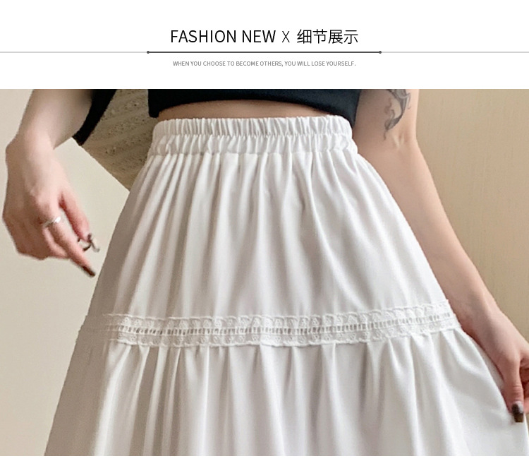 白いレースのケーキのスカートの女性の春の夏のタイプの小さい背のa字の傘のスカートはやせていることが見えます。