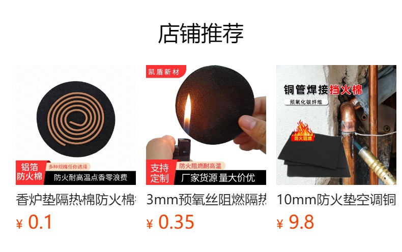 耐高温防火断熱綿、エアコン銅管溶接用防火綿、炭素繊維プレオキシ化糸、不織布難燃性フェルト