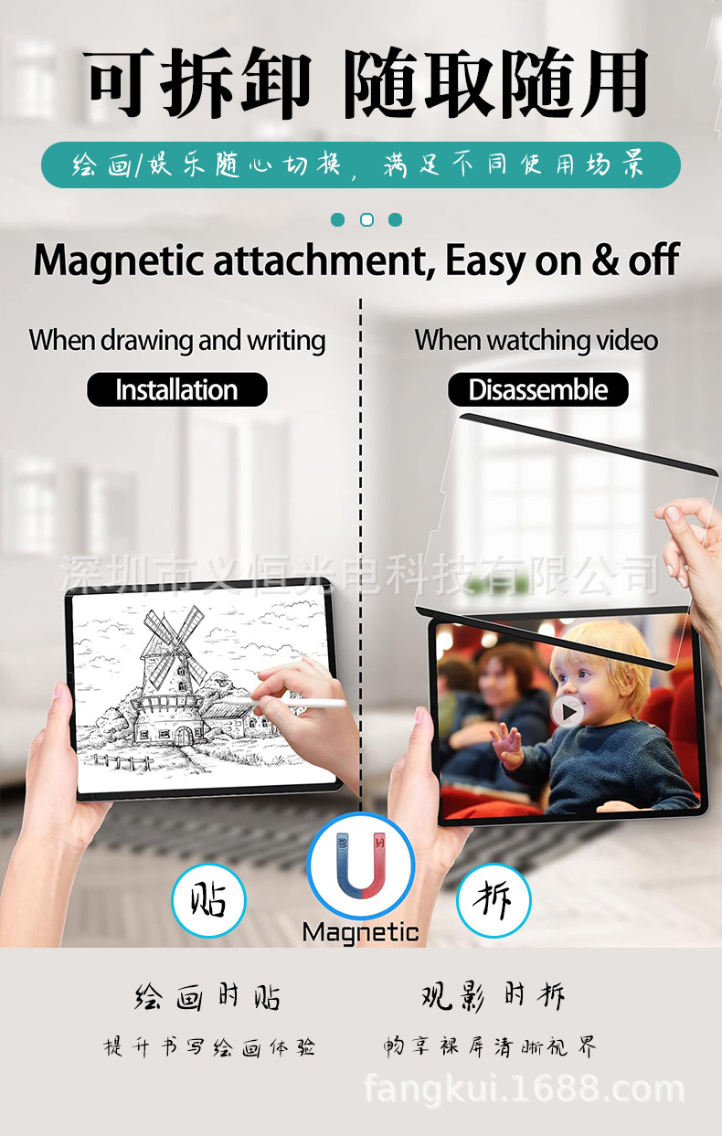 2024 新しい iadair 11inch ipadpro 13inch M4 クラス紙フィルム磁気取り外し可能つや消し反射防止アンチブルーライト