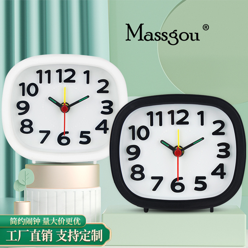 目覚まし時計の学生は寝室で静かなベッドの上の振り子時計を使って、簡単な四角いデスクトップ時計のアイデアの大きな字の台時計で時計を騒がせます。