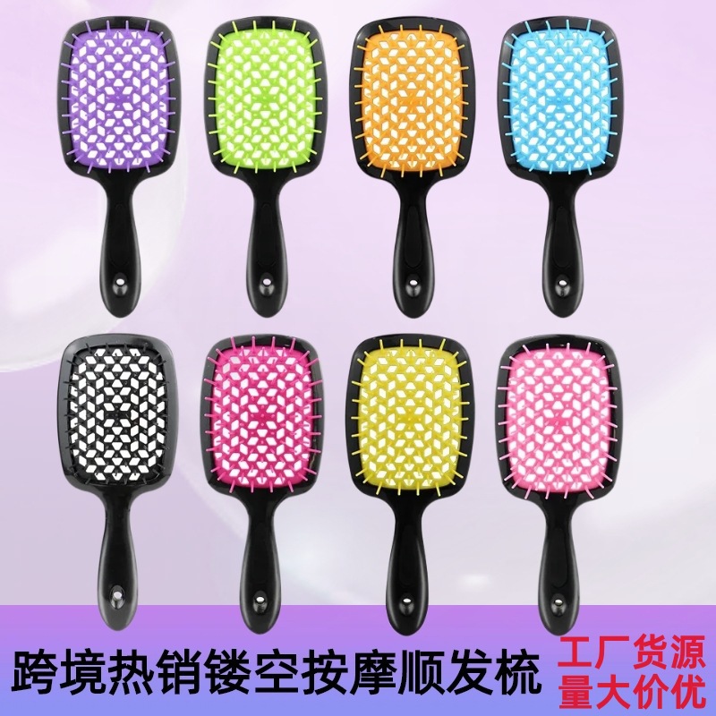 髪を滑らかにする穴付き頭皮マッサージコーム、ポータブルTTヘアコーム、家庭用帯電防止結び目コーム