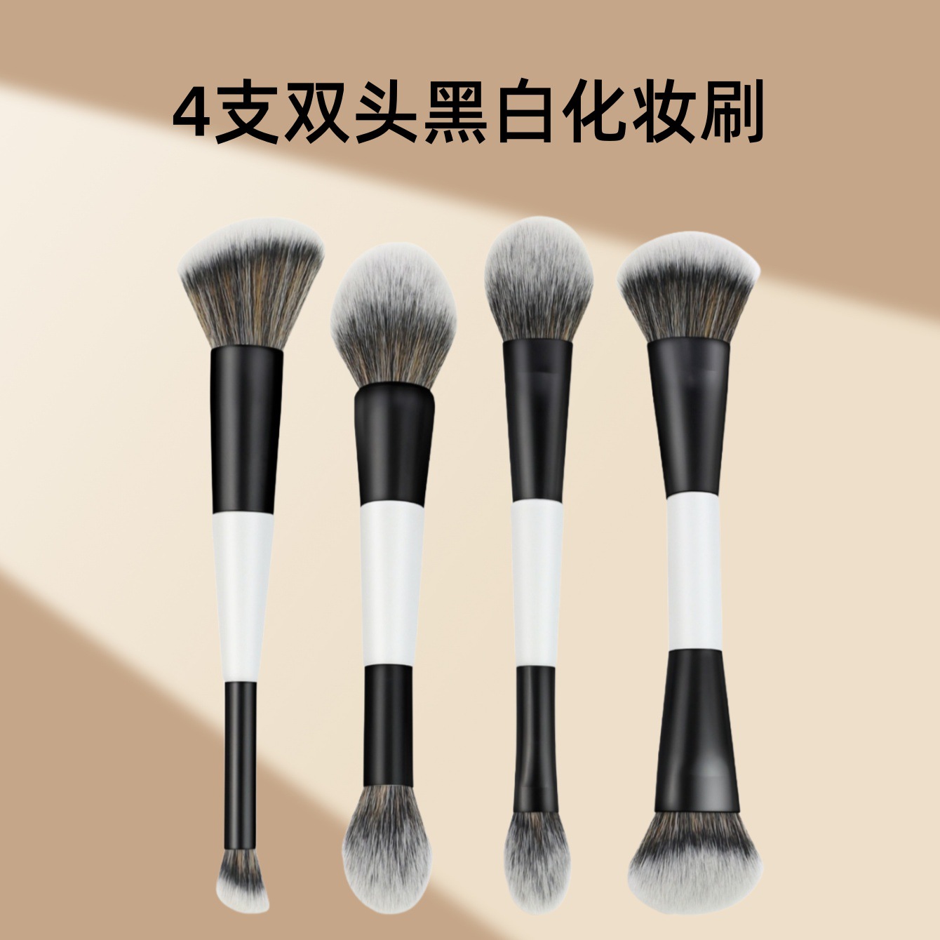 跨境热卖4支双头黑白化妆刷粉底刷散粉刷腮红刷高光刷美妆工具