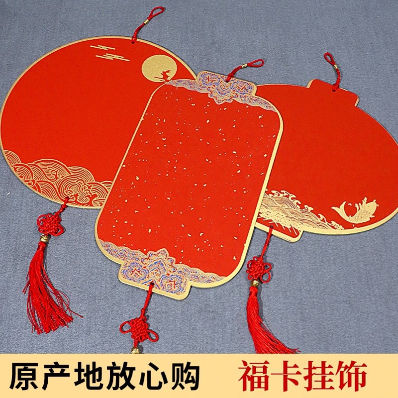 新年福卡挂件批发写福字的卡纸烫金蜡染宣纸万年红斗方硬卡挂饰