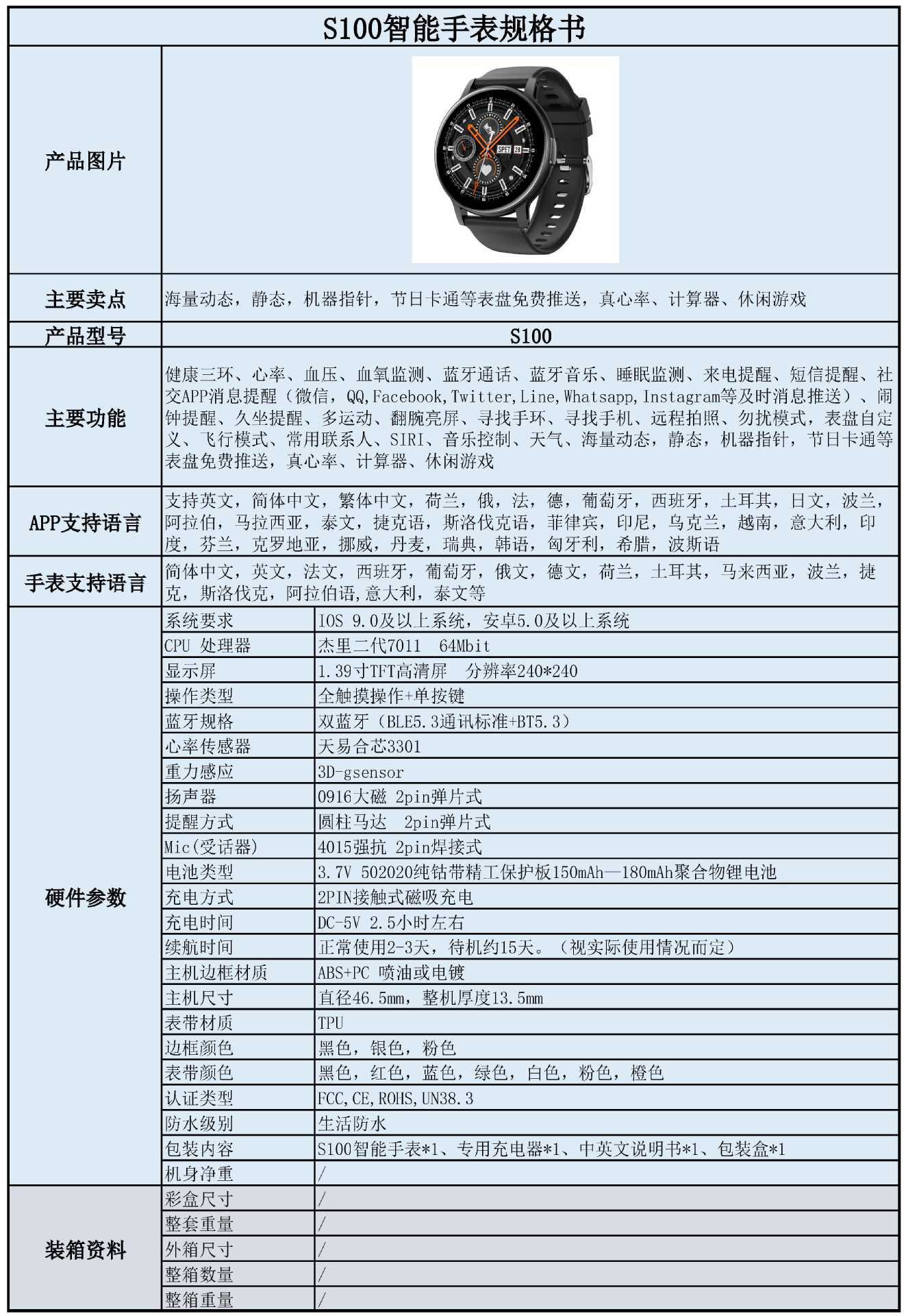 S100新しい屋外スマート腕时计1.45インチhdビッグラウンド画面懐中电灯情报プッシュスポーツ腕时计