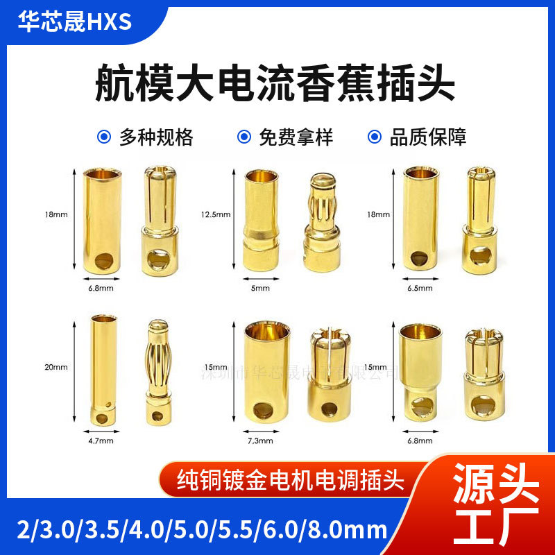 航空模型純銅金メッキバナナプラグ2/3.0/4.0/5.0/5.5/6.0/8.0mmモーター電気プラグ