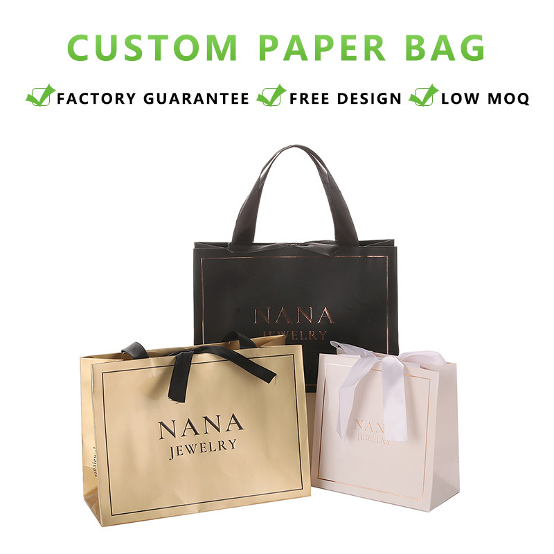 紙袋カスタムCustom Paper Bagゴールドスタンピングシルクリボンハンドル