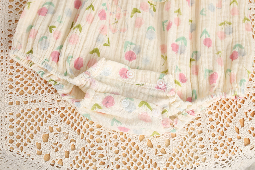 ベビー服、夏服、新生児女の子ジャンプスーツ、満月百日服、サスペンダーロンパース、薄手夏服