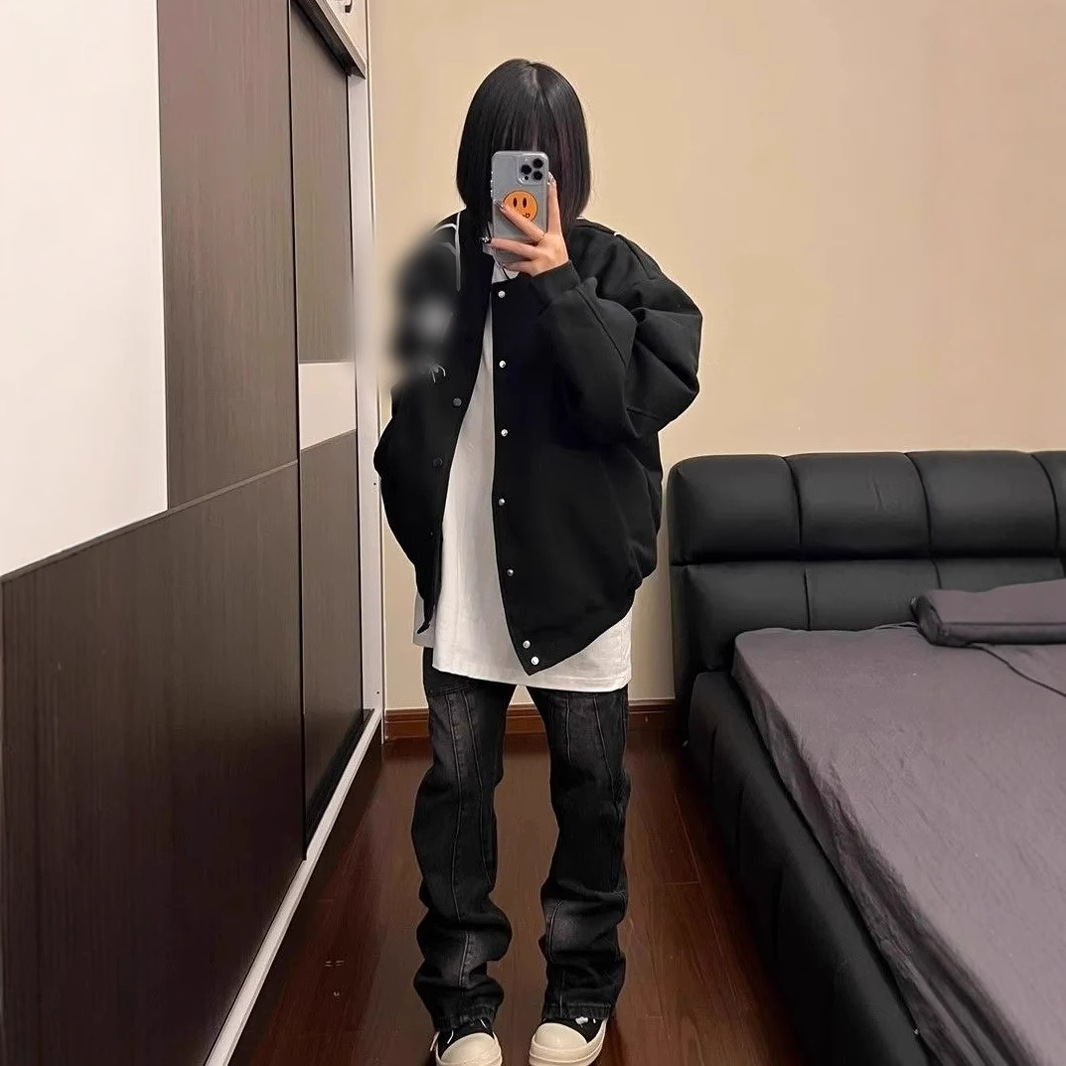 国潮つなぎコート男女ゆるい潮ins怠惰な風bf欧米高街hiphop潮牌野球服