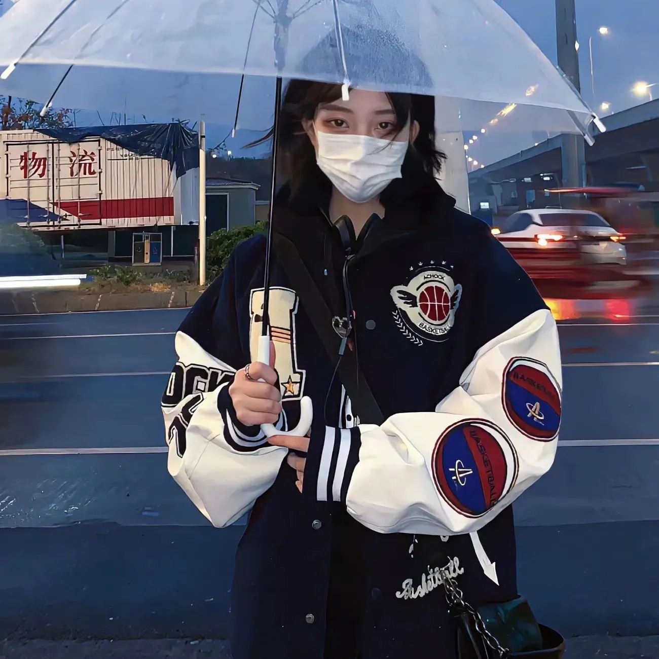ヴィンテージアメリカのプリント野球服ファッションins秋冬学生韓国版ゆるいコート女性甘いクールな学院風