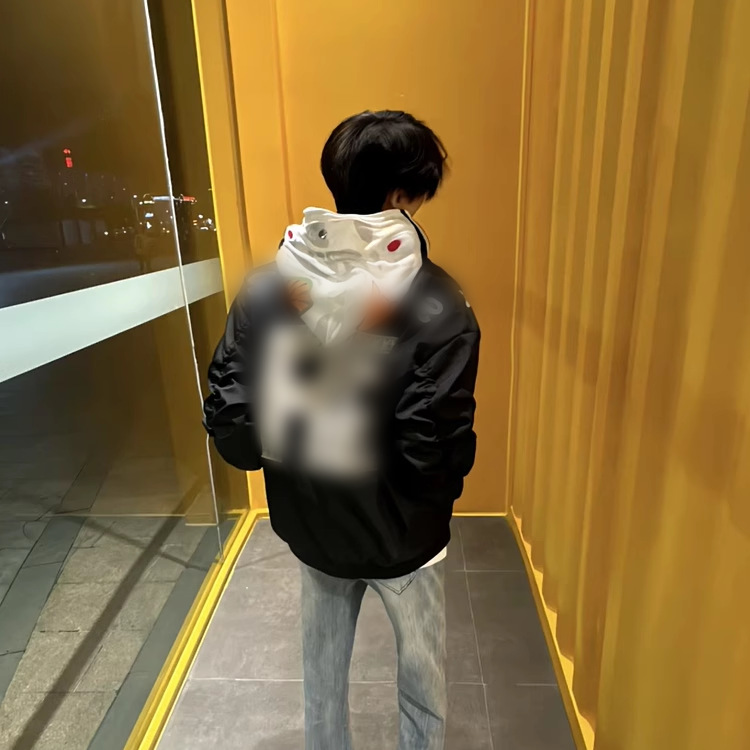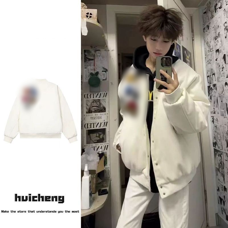 百合重工プリント野球服アメリカ式高街コート男秋冬金バッジ冬帽子なしジャケットinsブーム