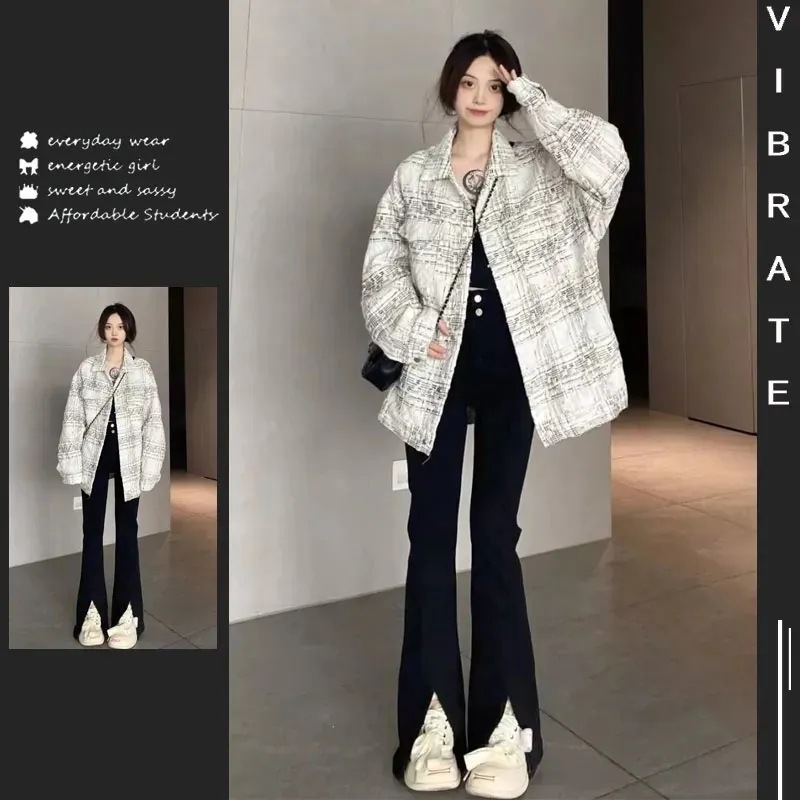 国潮港風は色の千鳥格の小さい香風の春秋の女性の春秋の高級感の小さい大衆の独特なジャケットの上着の潮にぶつかります。