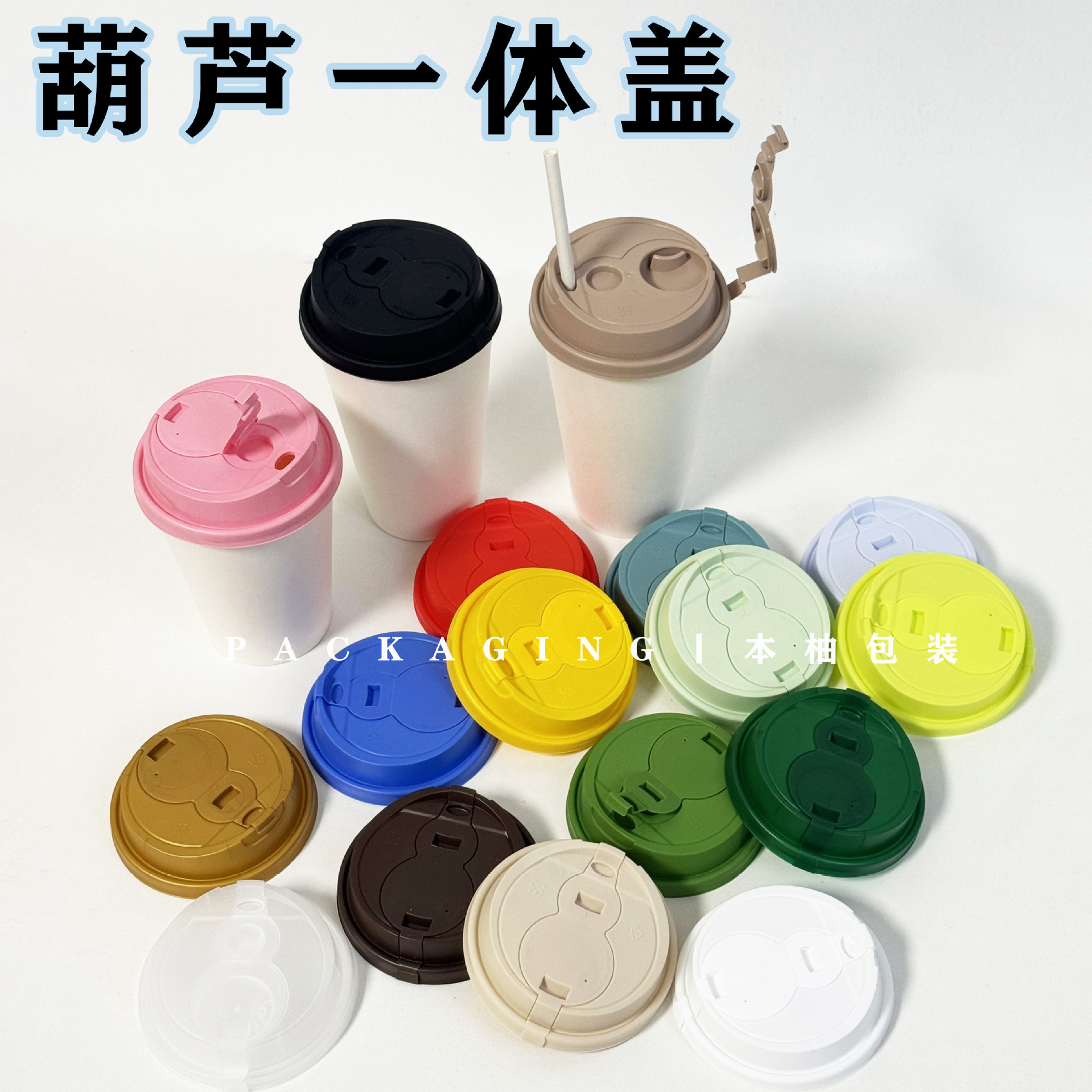 90口径ミルクティーカップカバー紙コップコーヒーカップカバー射出カバー一体防漏カバー使い捨て接続カラーカバー