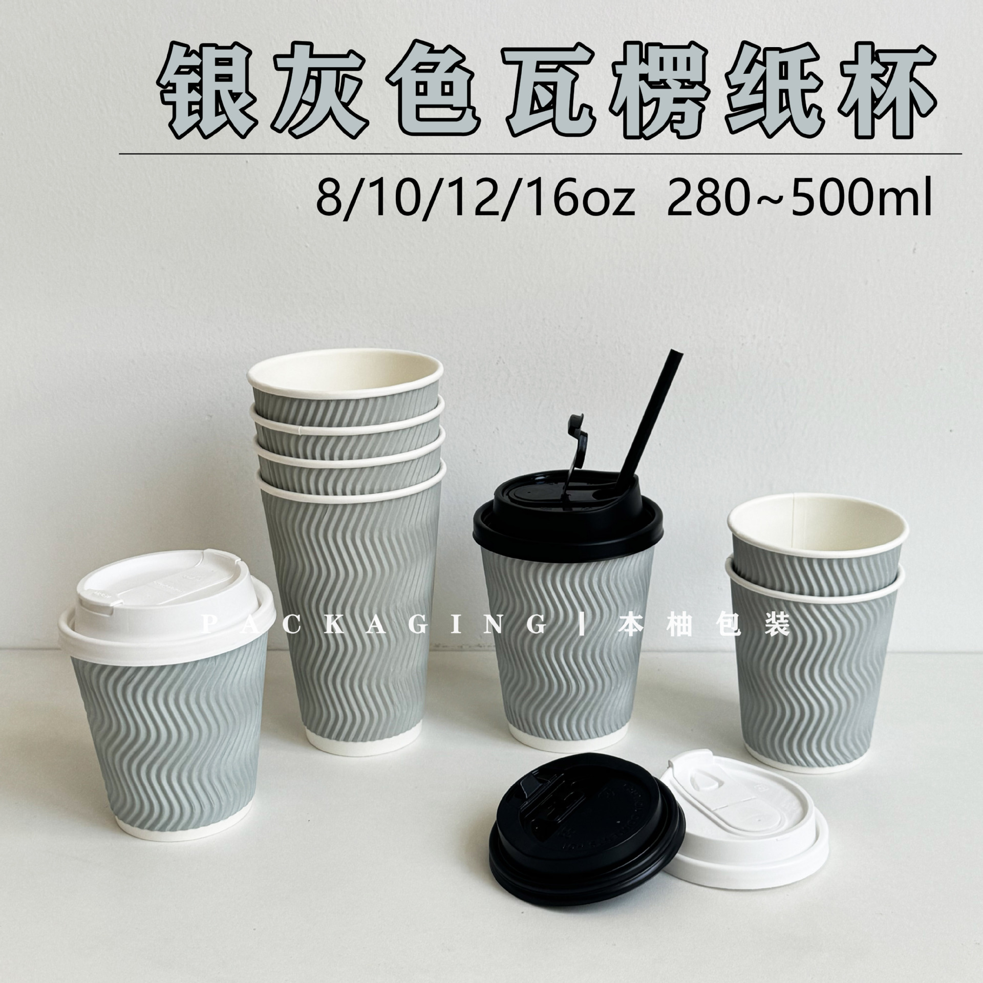 シルバーグレー段ボール紙カップ 8/10/12/16 オンス使い捨て増粘三層抗火傷コーヒーとミルクティーホットドリンク紙カップ