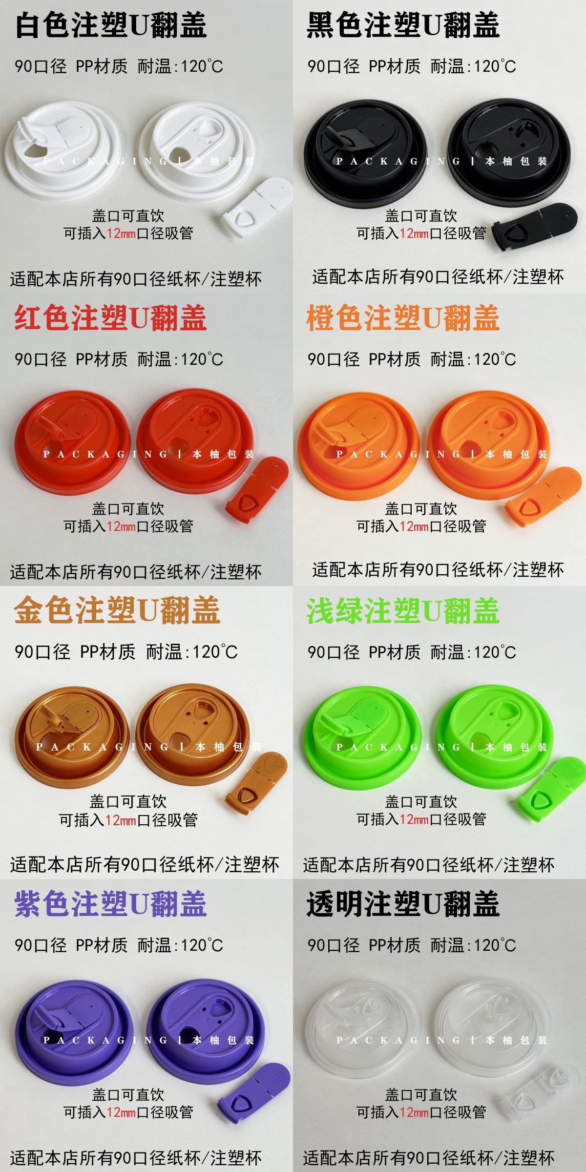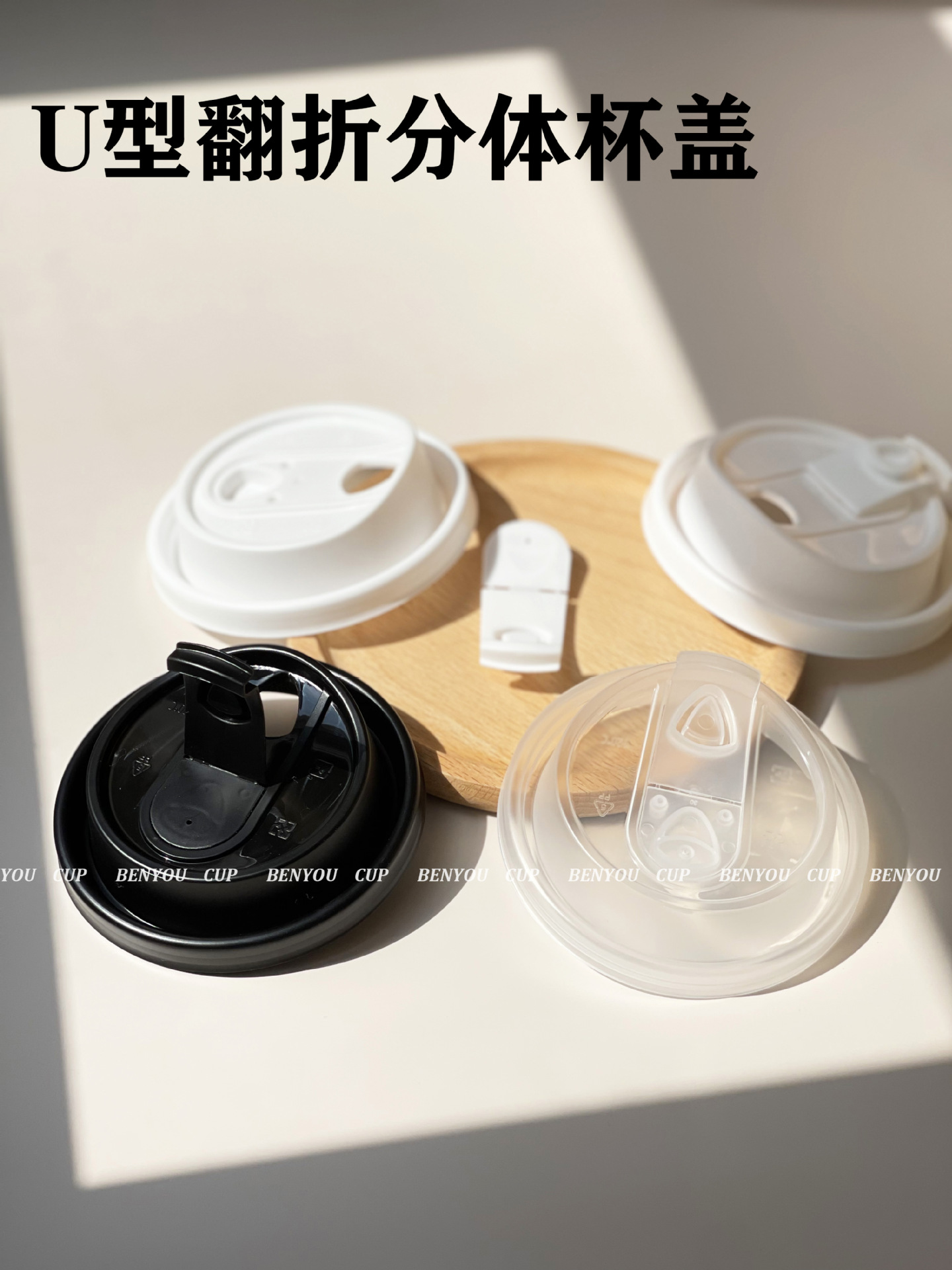 ベンザボンカラー 80/90 口径 U 字型折りたたみ注入蓋テイクアウトコーヒーミルクティー漏れ防止黒と白の透明カップ蓋