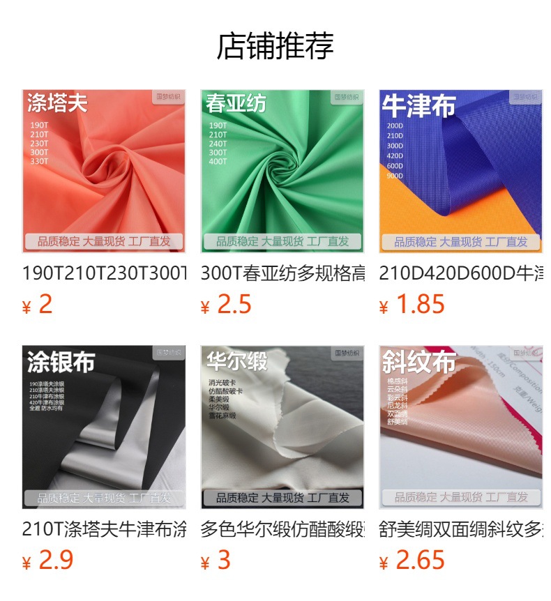 190T210T230T300Tポリエステルタフタ現物多色服装バッグ裏布ポリエステル上質テント生地