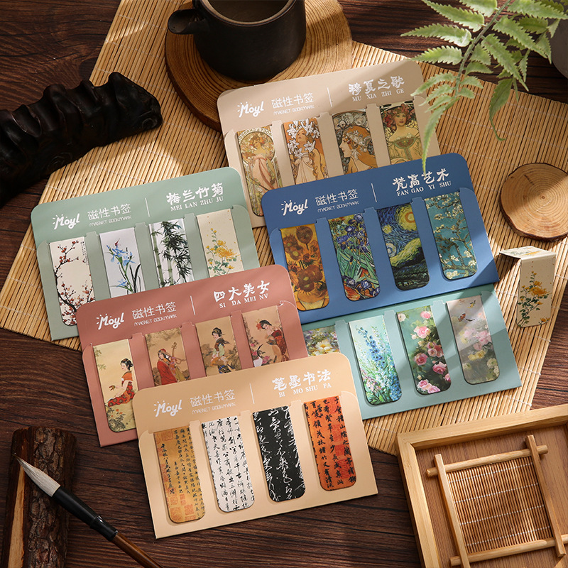 ゴッホ油絵磁気ブックマークミュシャモネ浮世絵名画学生ブッククリップ小さな新鮮な冷蔵庫ステッカー 4 枚