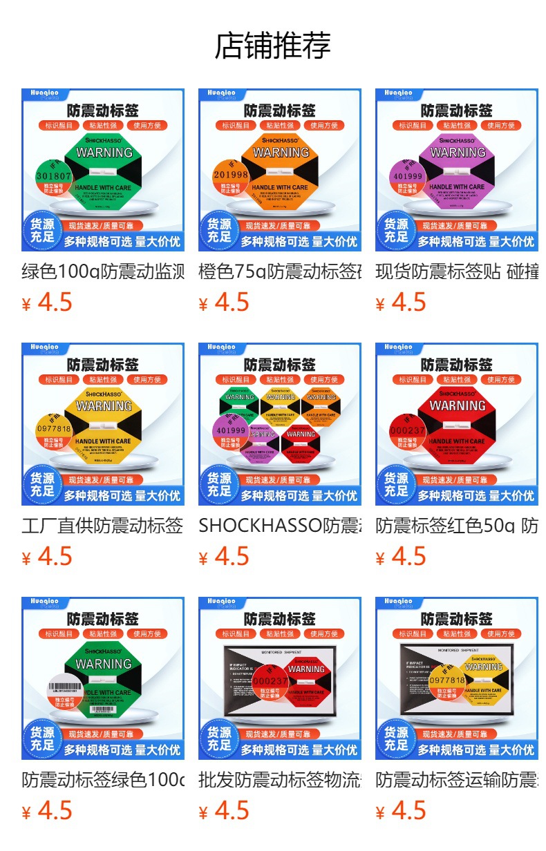 深センメーカー卸売り衝突防止指示ラベル衝撃ラベル耐震ラベル振動防止レコーダー耐震防止