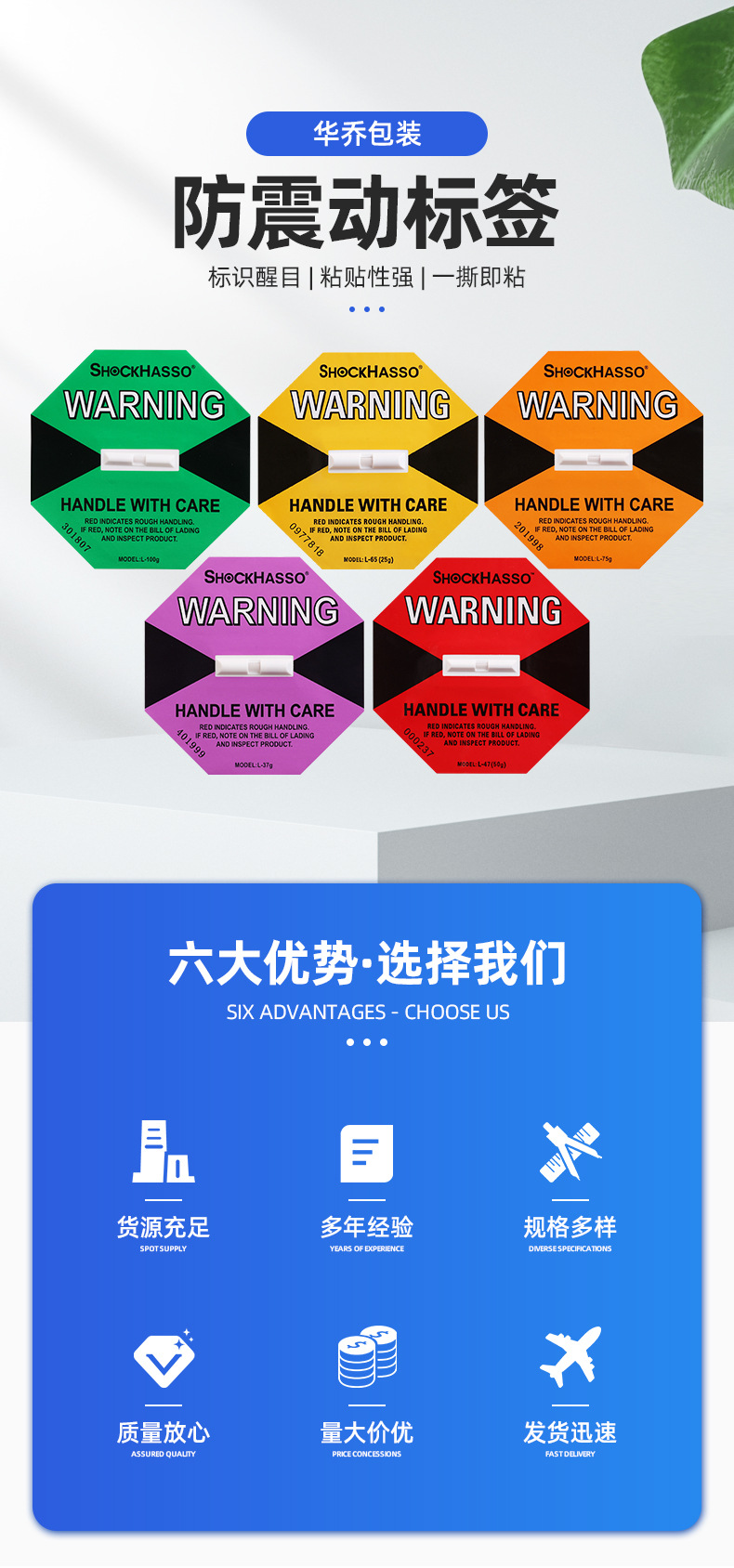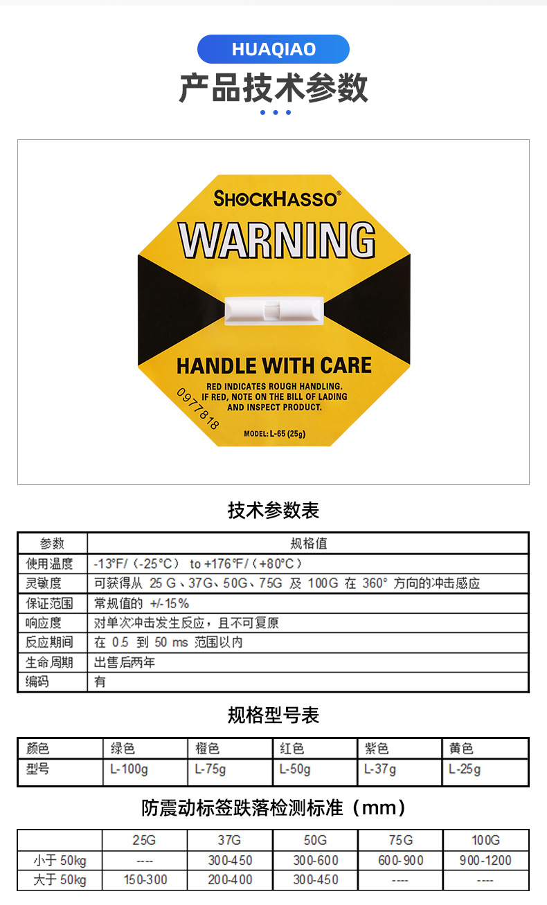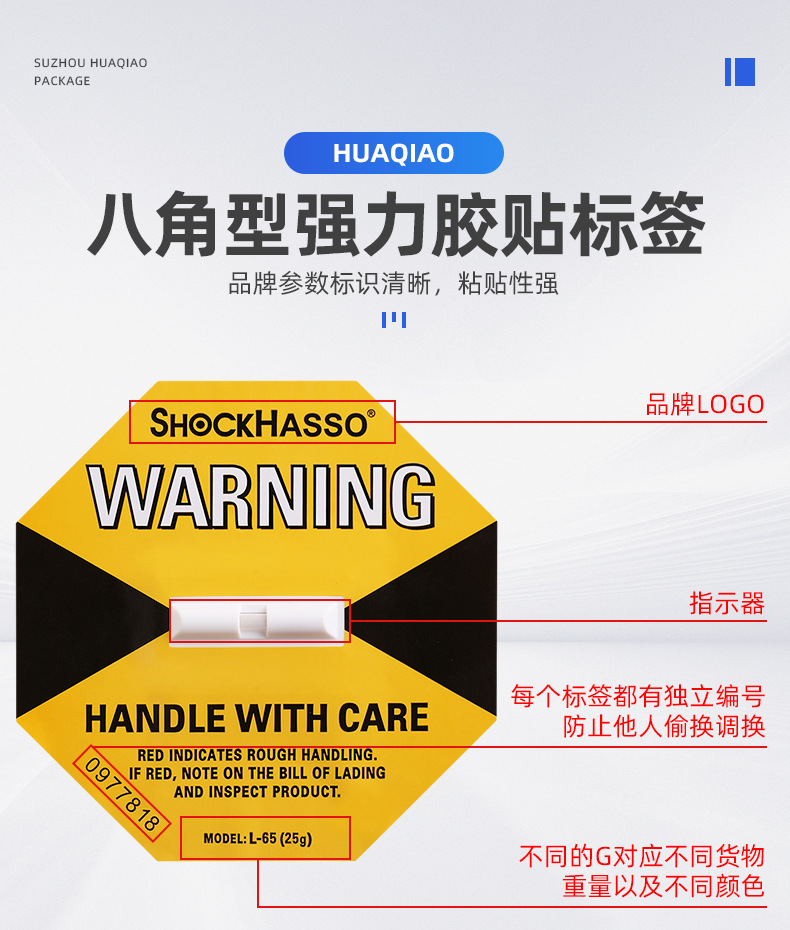 SHOCKHASSO 第二世代耐衝撃移動ラベル物流輸送監視傾斜防止耐衝撃表示ラベルステッカー