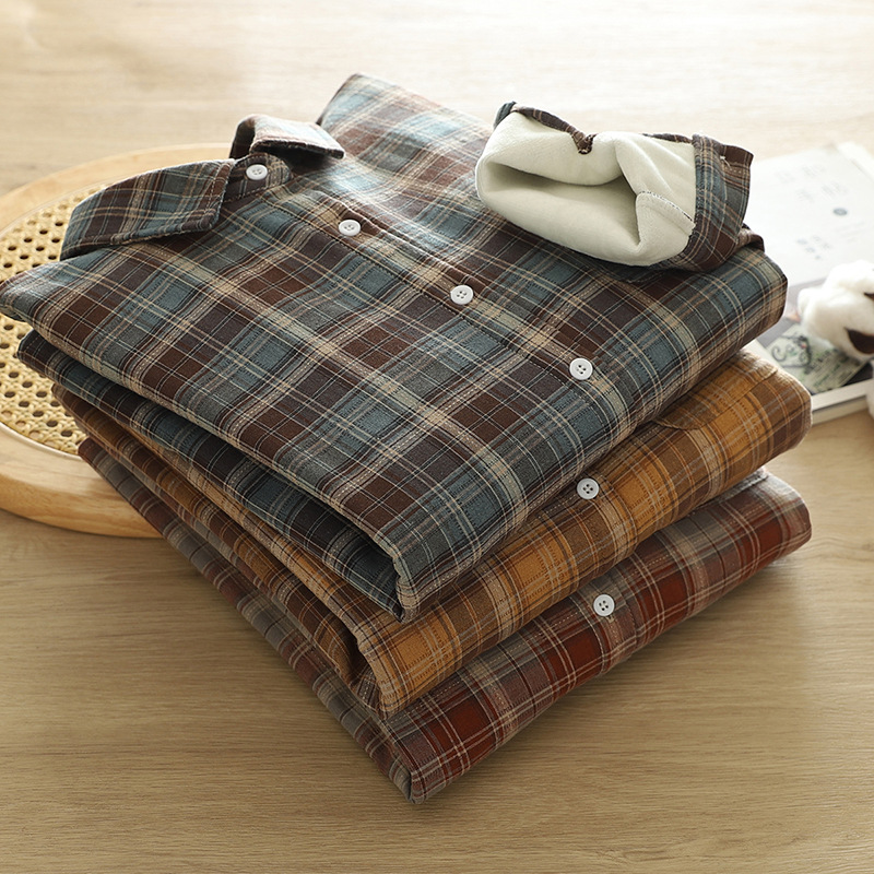 2024秋冬韓国版通勤格子にベルベットをつけて保温シャツを厚くした女性は、子羊のシャツをカジュアルにした