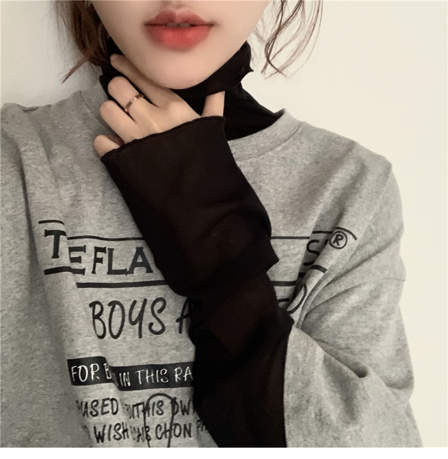 網紗レース春と秋の重ね着の底のシャツの女性の薄い長袖の高襟の日焼け止めの中に純色の長袖の洋風の上着を掛けます。