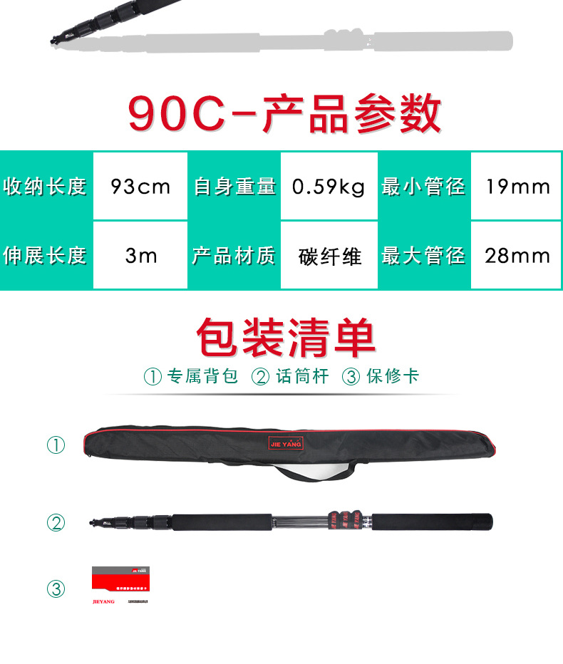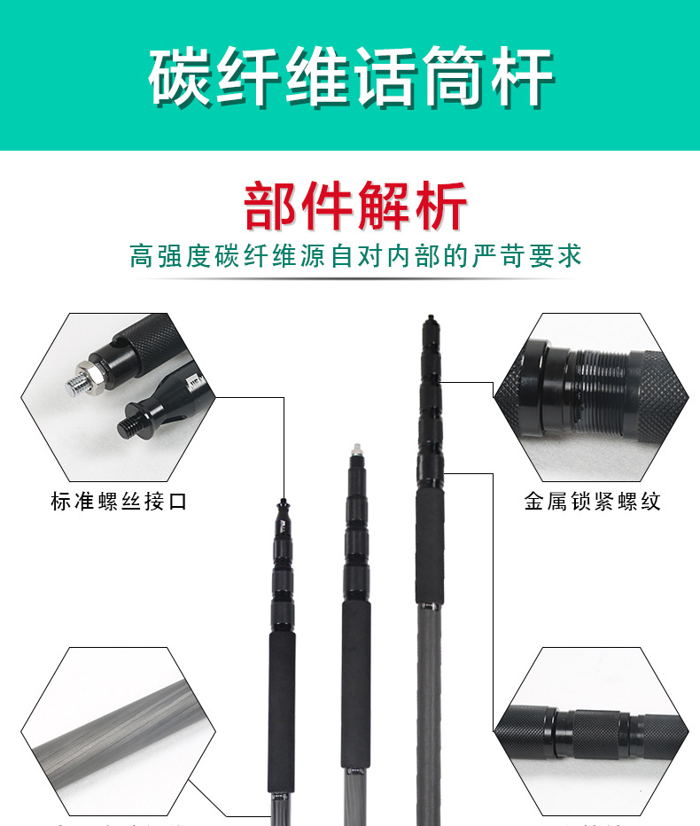 鴻図挑発棒の電話棒3メートル5メートルのマイクの延長棒の映画は劇のグループを撮影して炭素繊維の取材棒を生放送します。